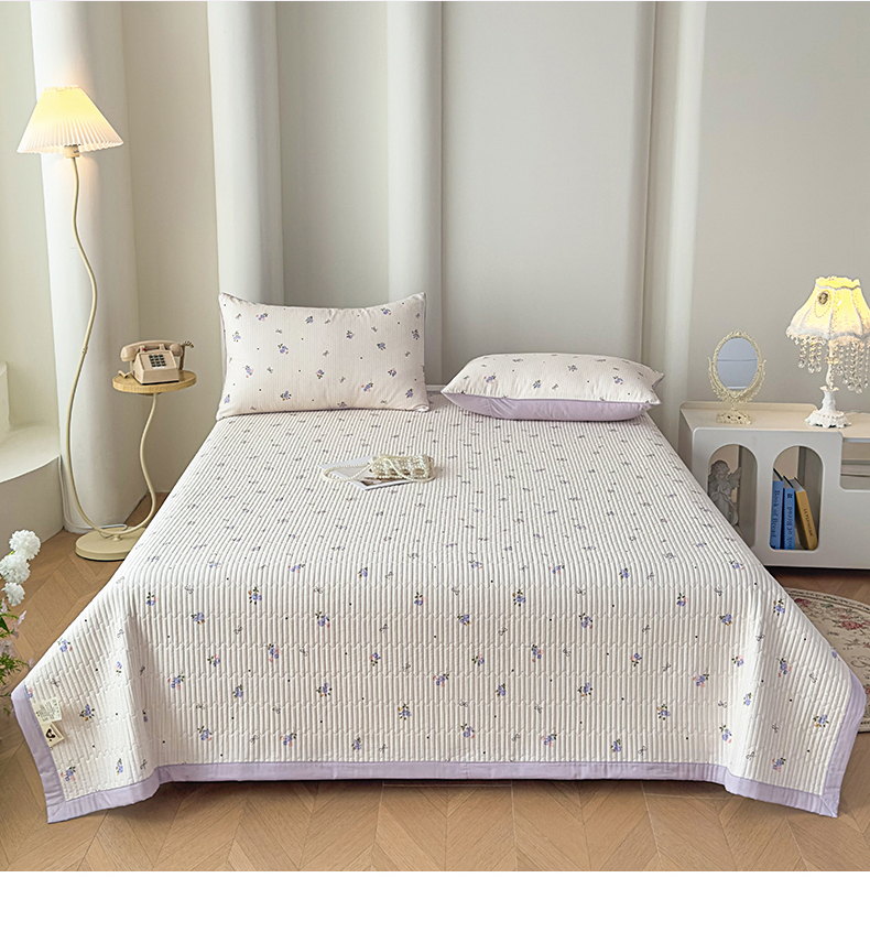 • 91家纺网 家纺一手货源 找家纺 橘夏家纺 2025春夏新款莱赛尔天丝棉床盖单床盖床盖单件--稀疏小花 清新小玫瑰-薰衣紫