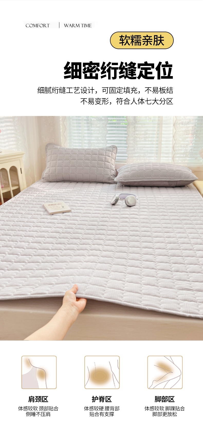 当前位置: 91家纺网 > 商品网购 > 床垫/床褥 > 普通床垫 > 圣比熊 2025新款云感双层纱夹棉床褥床护垫床垫保护垫学生宿舍专用三件套 梦境灰