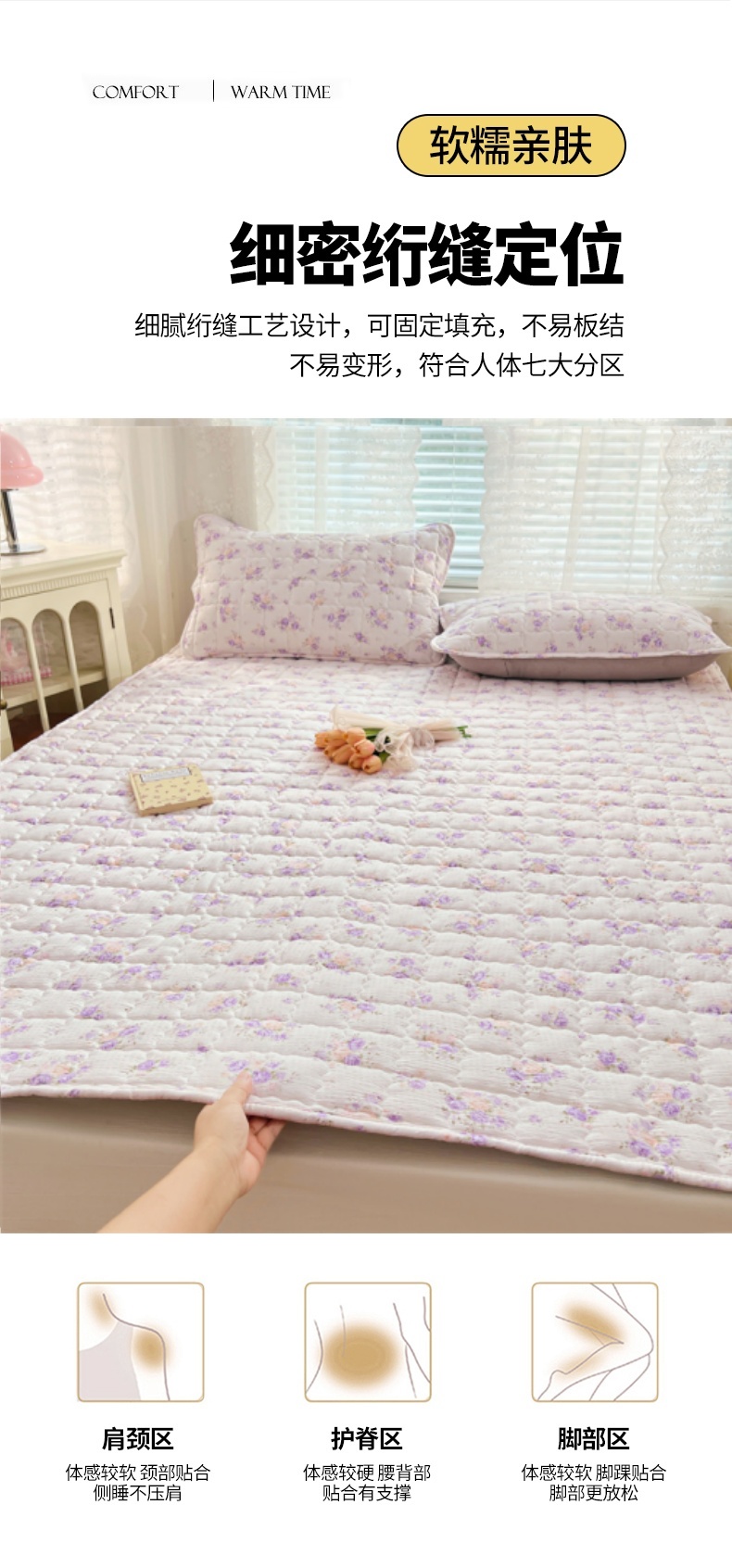 当前位置: 91家纺网 > 商品网购 > 床垫/床褥 > 普通床垫 > 圣比熊 2025新款云感双层纱夹棉床褥床护垫床垫保护垫学生宿舍专用三件套 紫薇花园