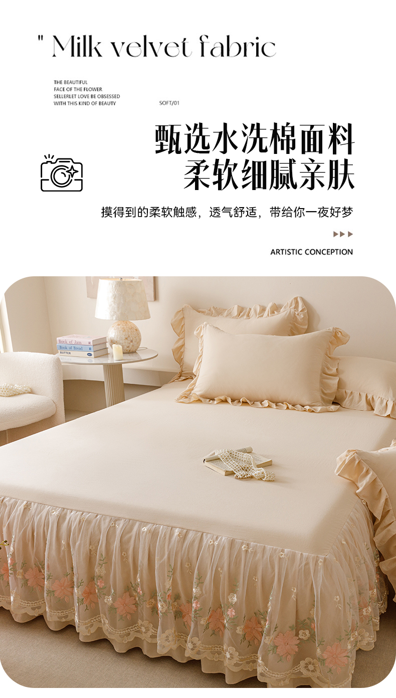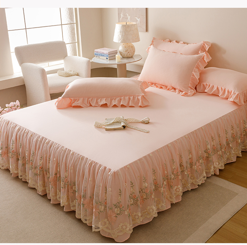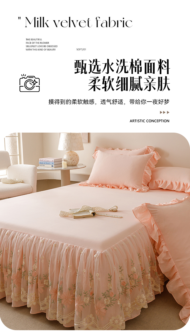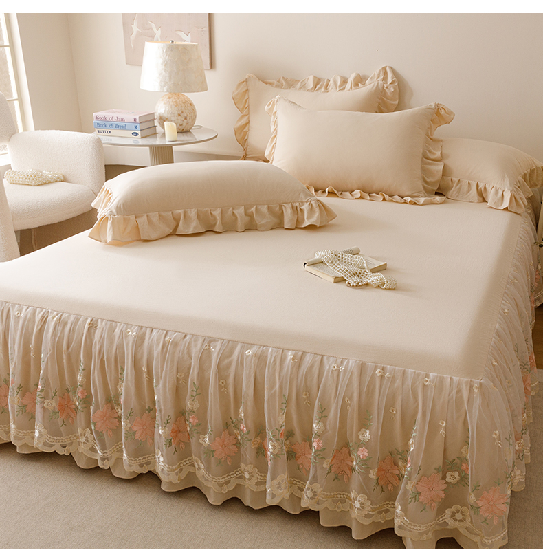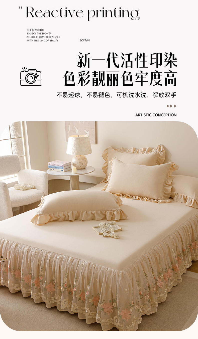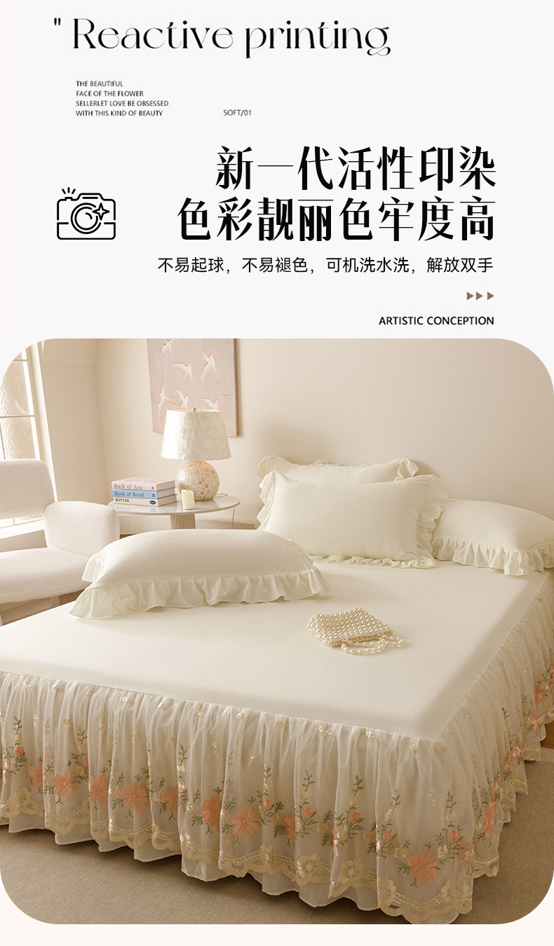 当前位置: 91家纺网 > 商品网购 > 床品套件 > 三件套 > (总)好儿喜家纺2025新款A类水洗棉床裙三件套-花甜系列