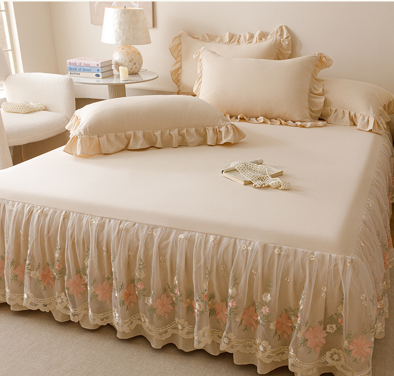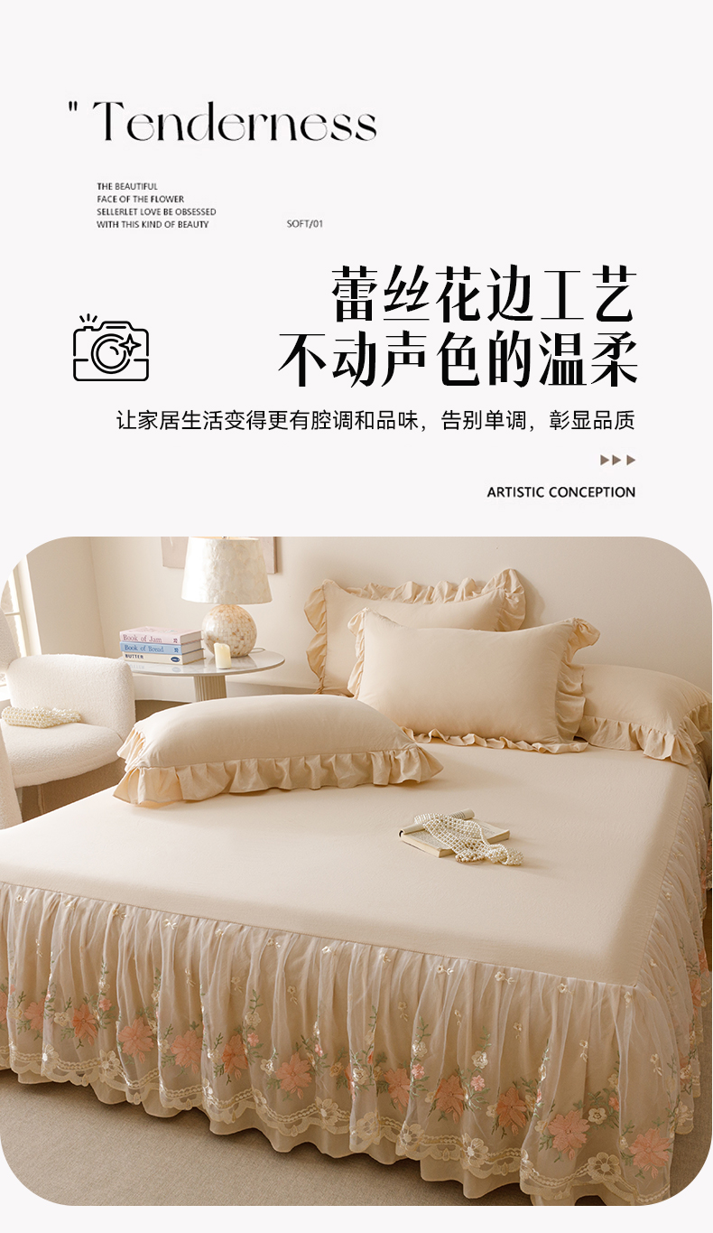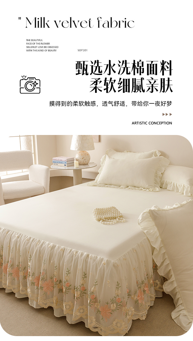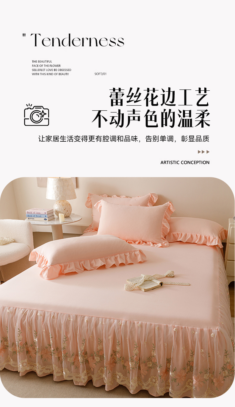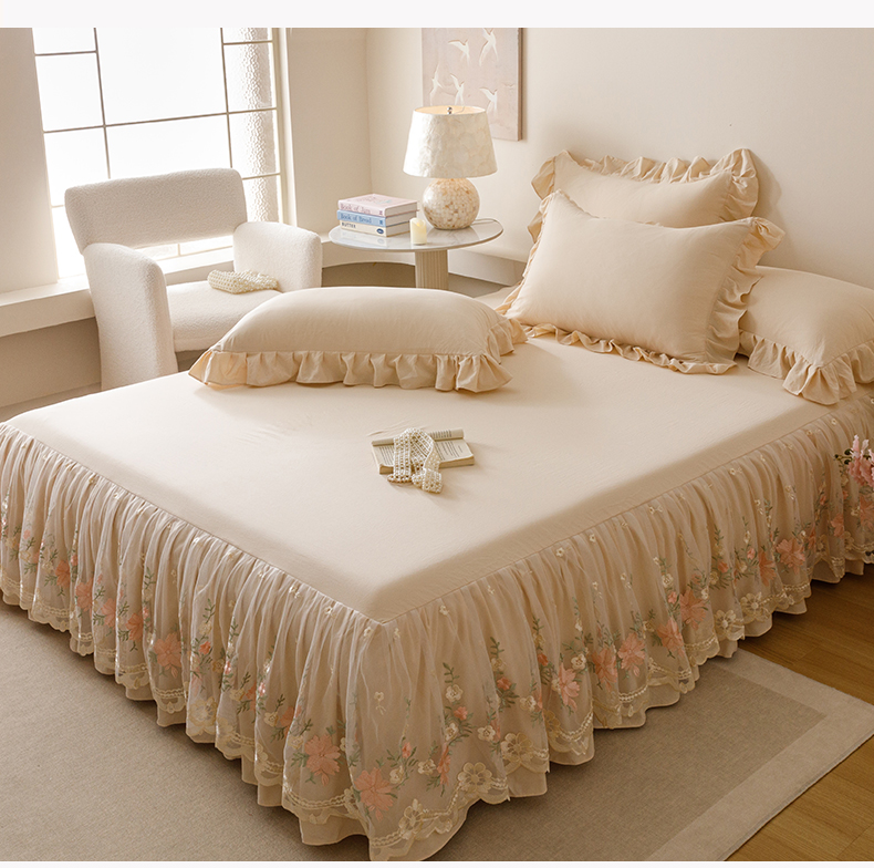 当前位置: 91家纺网 > 商品网购 > 床品套件 > 三件套 > (总)好儿喜家纺2025新款A类水洗棉床裙三件套-花甜系列