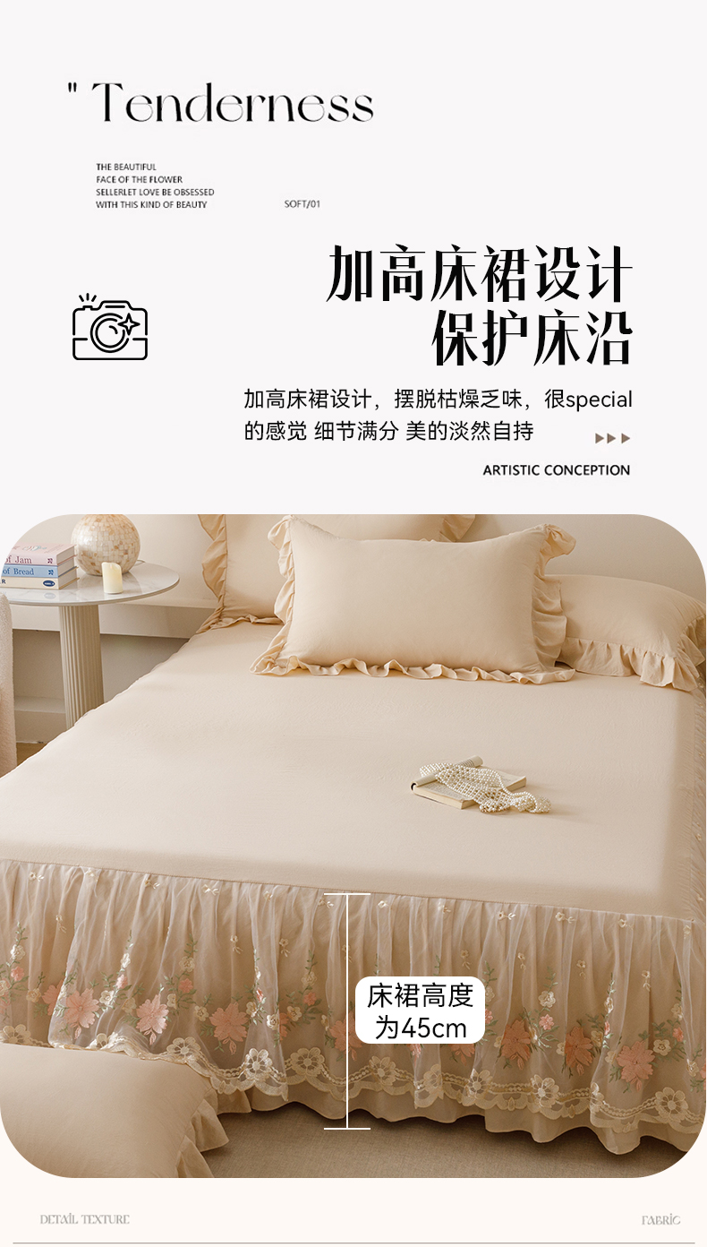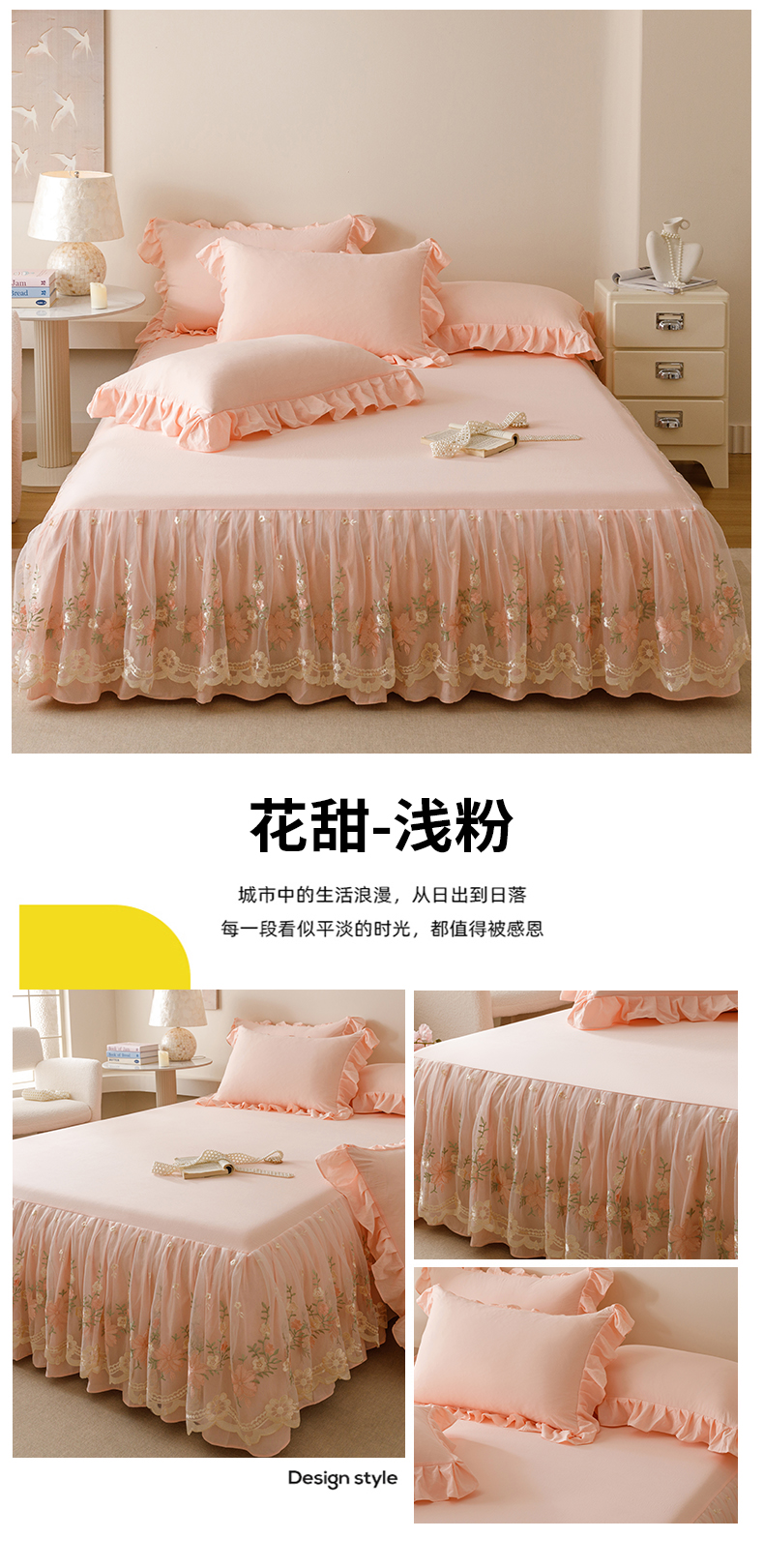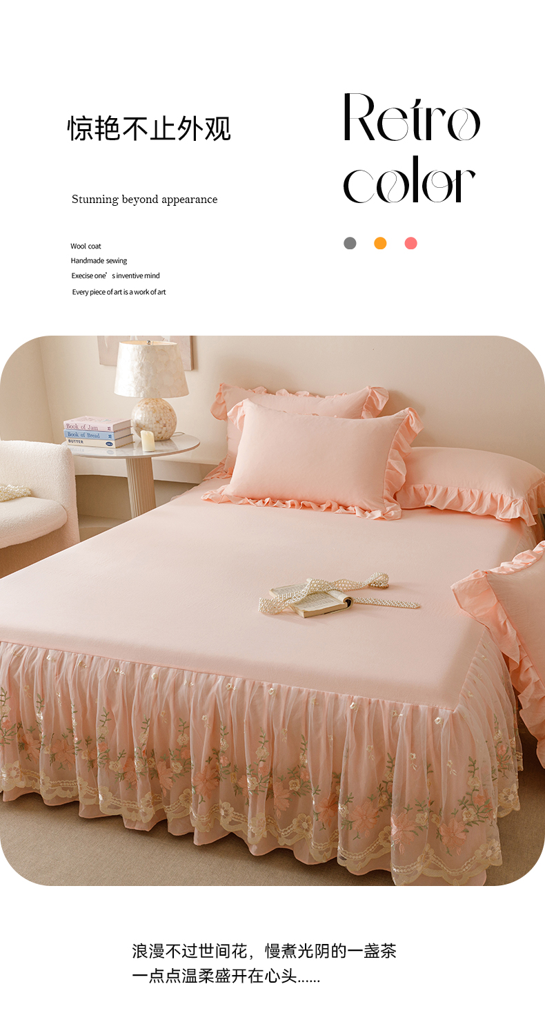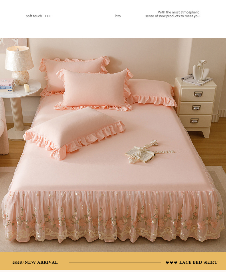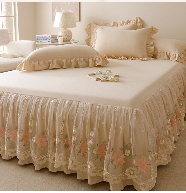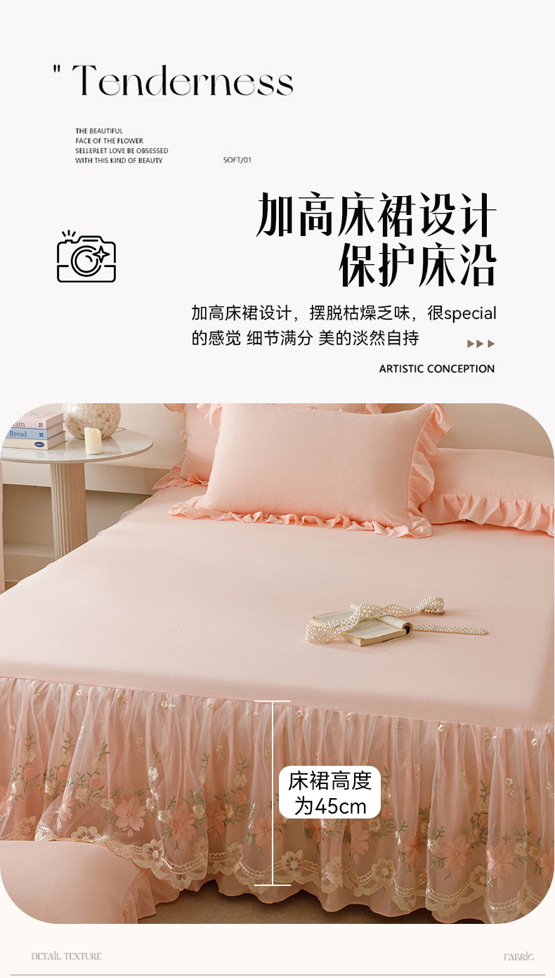 当前位置: 91家纺网 > 商品网购 > 床品套件 > 三件套 > (总)好儿喜家纺2025新款A类水洗棉床裙三件套-花甜系列