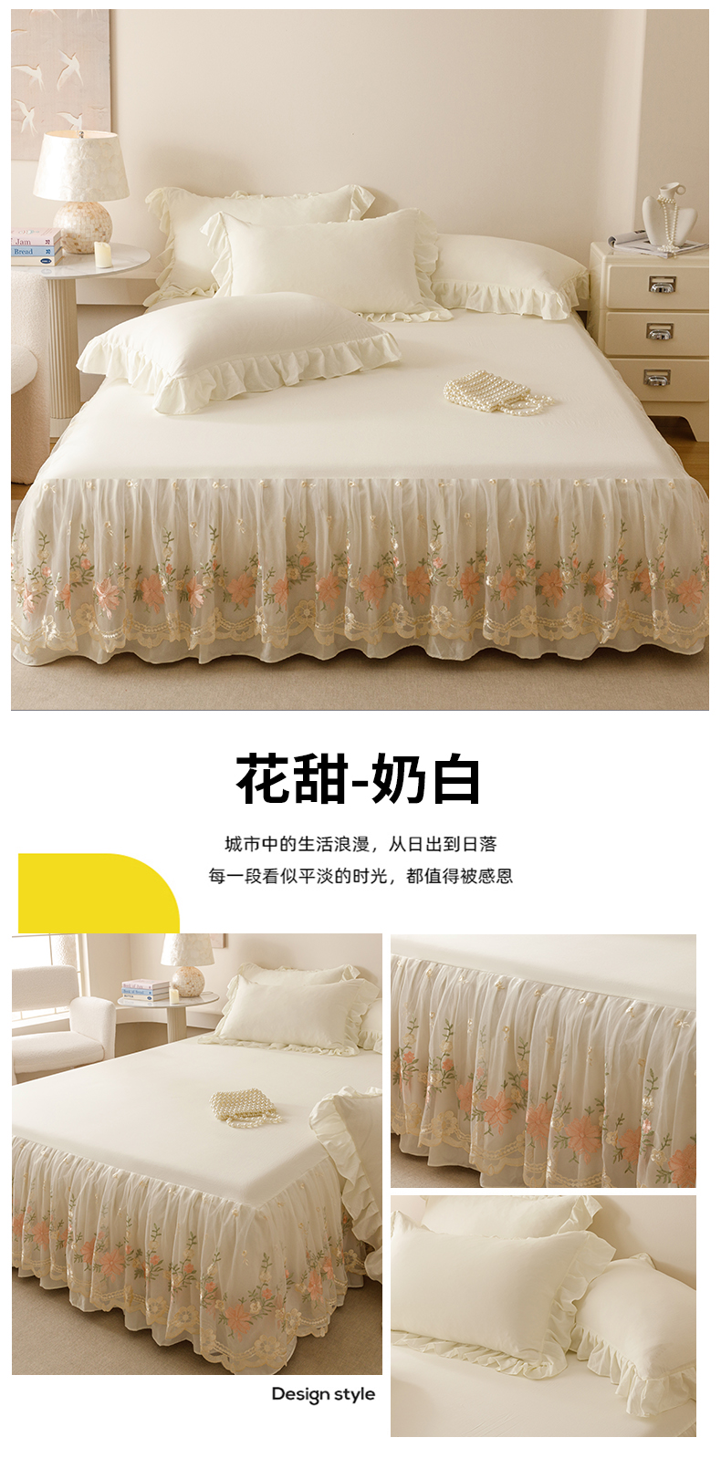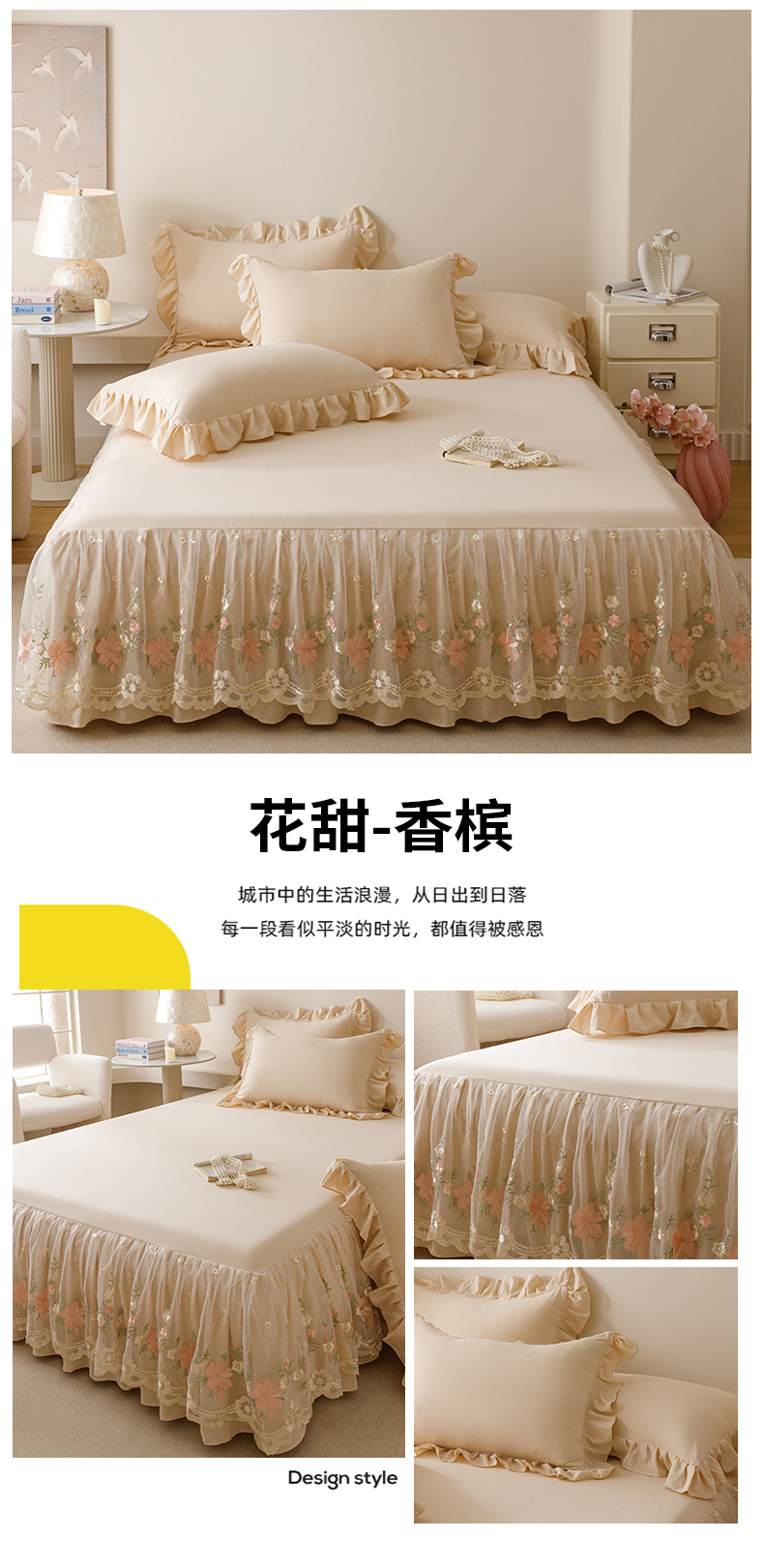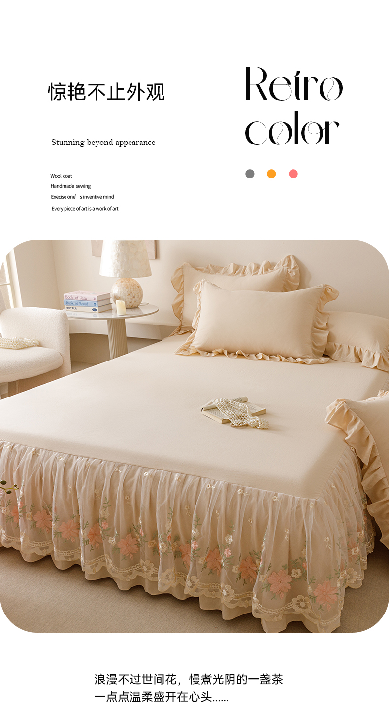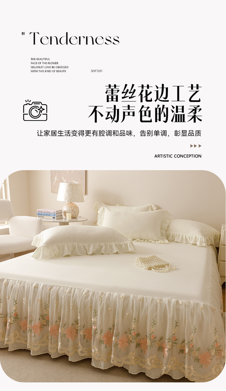 当前位置: 91家纺网 > 商品网购 > 床品套件 > 三件套 > (总)好儿喜家纺2025新款A类水洗棉床裙三件套-花甜系列