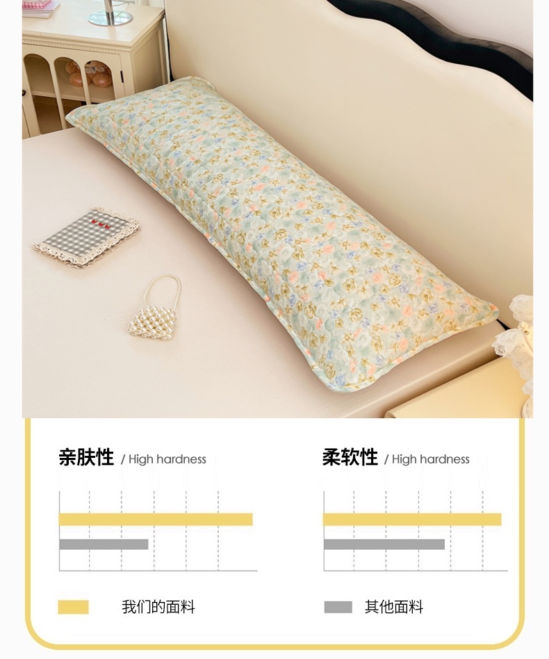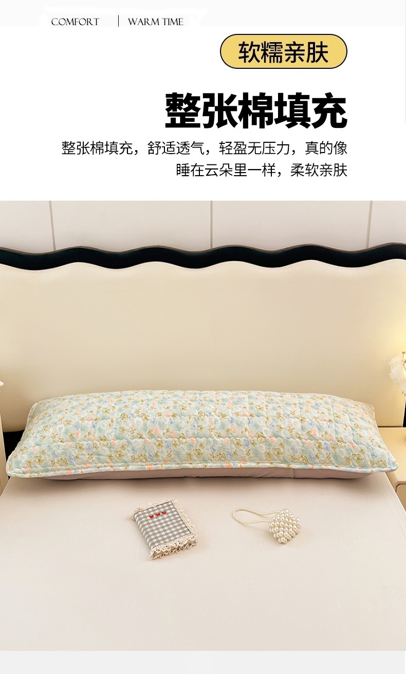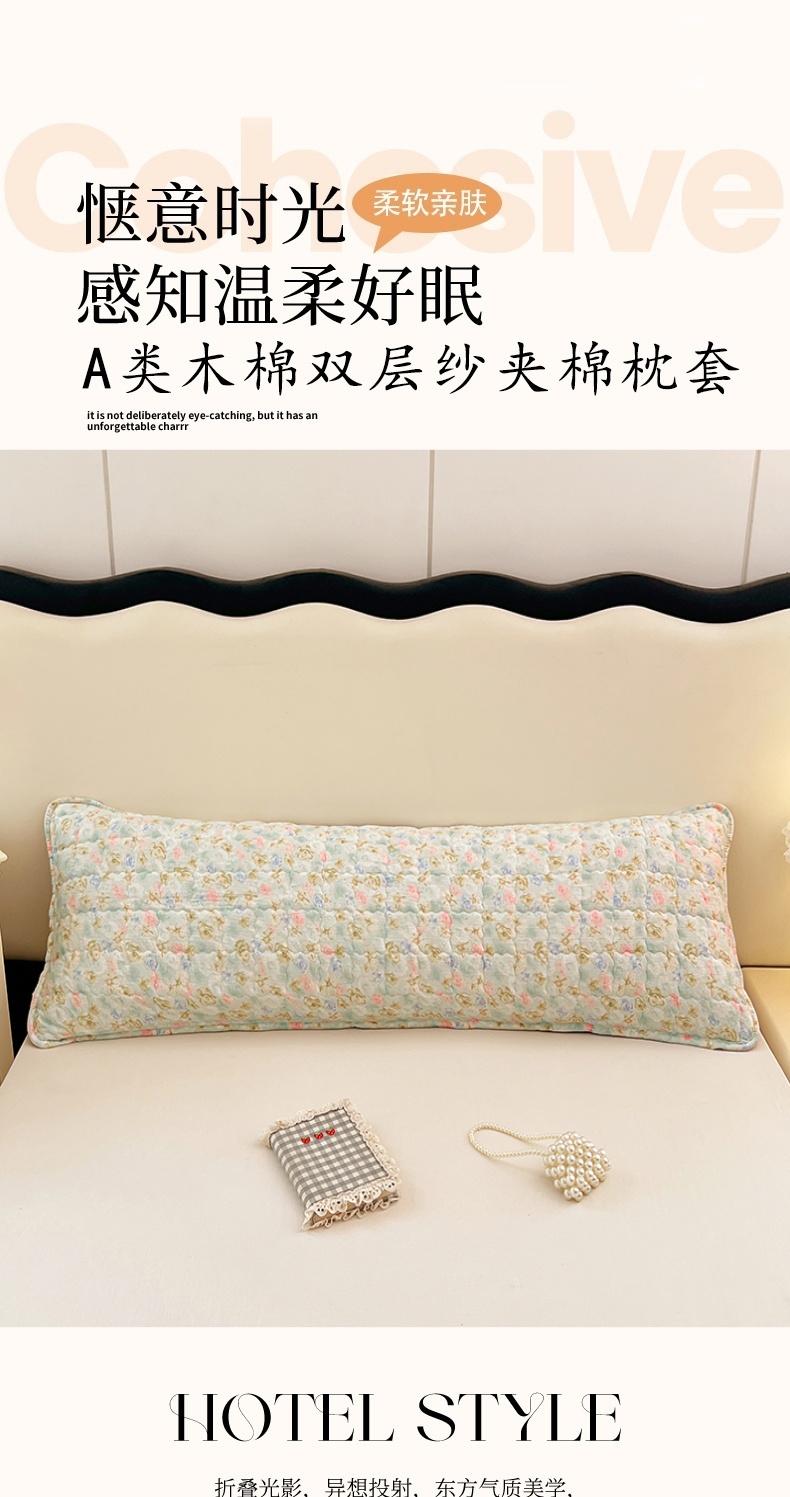商品名称:圣比熊 2025新款云感双层纱夹棉双人枕套情侣1.5m枕芯套1.8床加厚枕头套 春日初见