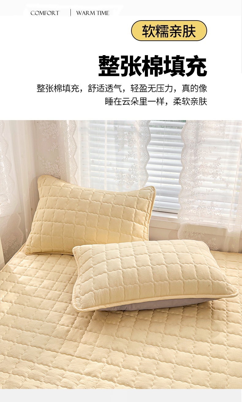 商品名称:圣比熊 2025新款云感双层纱夹棉枕套宿舍单人枕芯套一对装加厚枕头套 奶酪黄