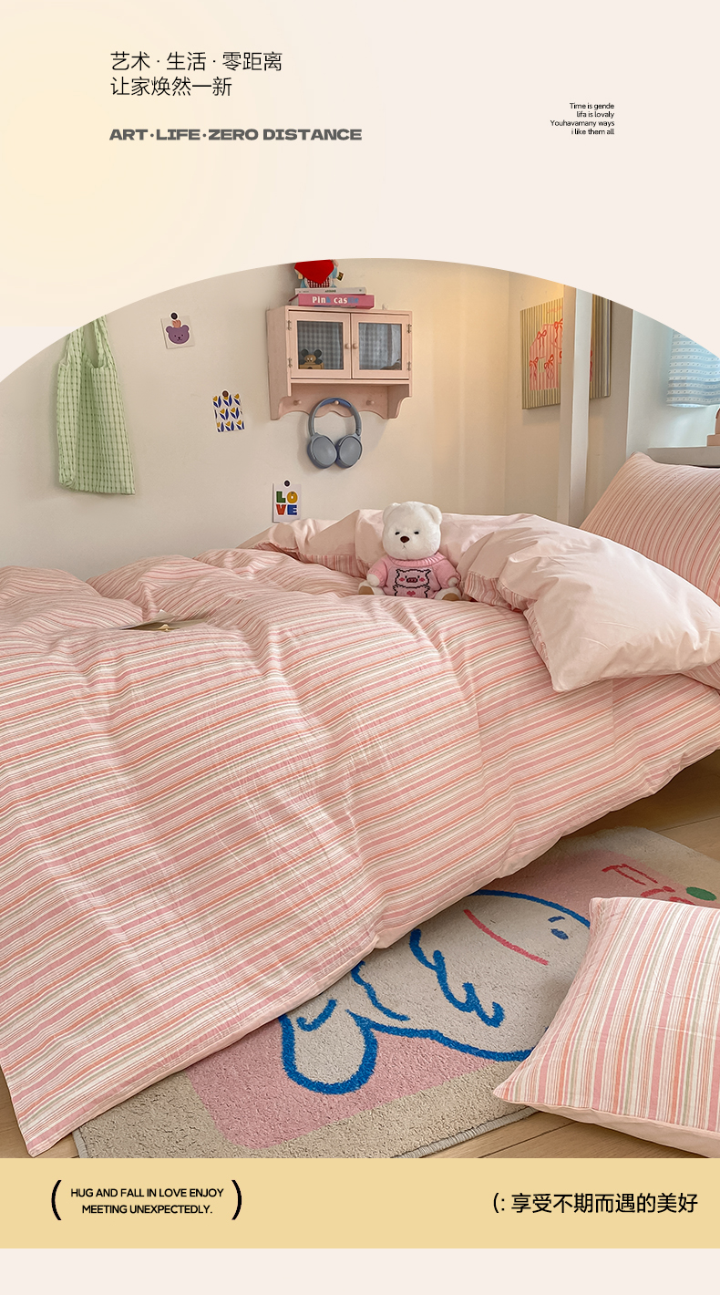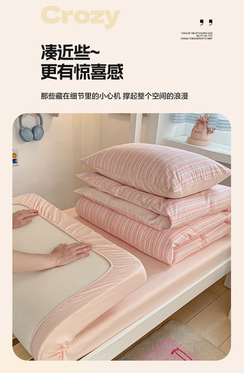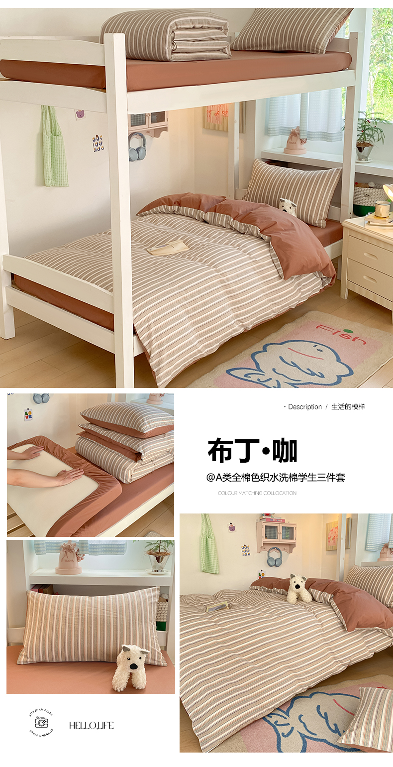当前位置: 91家纺网 > 商品网购 > 床品套件 > 三件套 > 寐居家纺 2025新款亲肤舒适全棉纯棉色织水洗棉学生三件套 布丁-粉