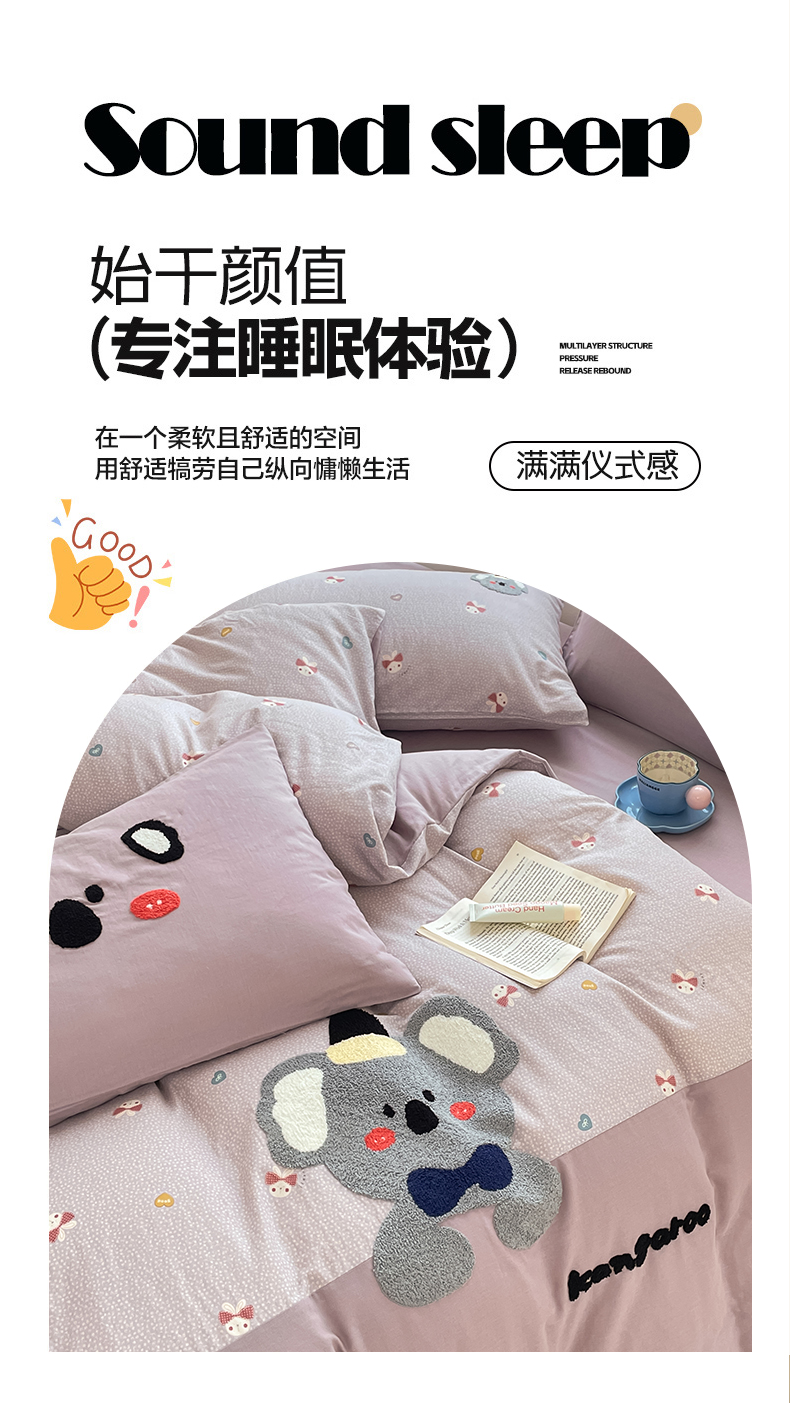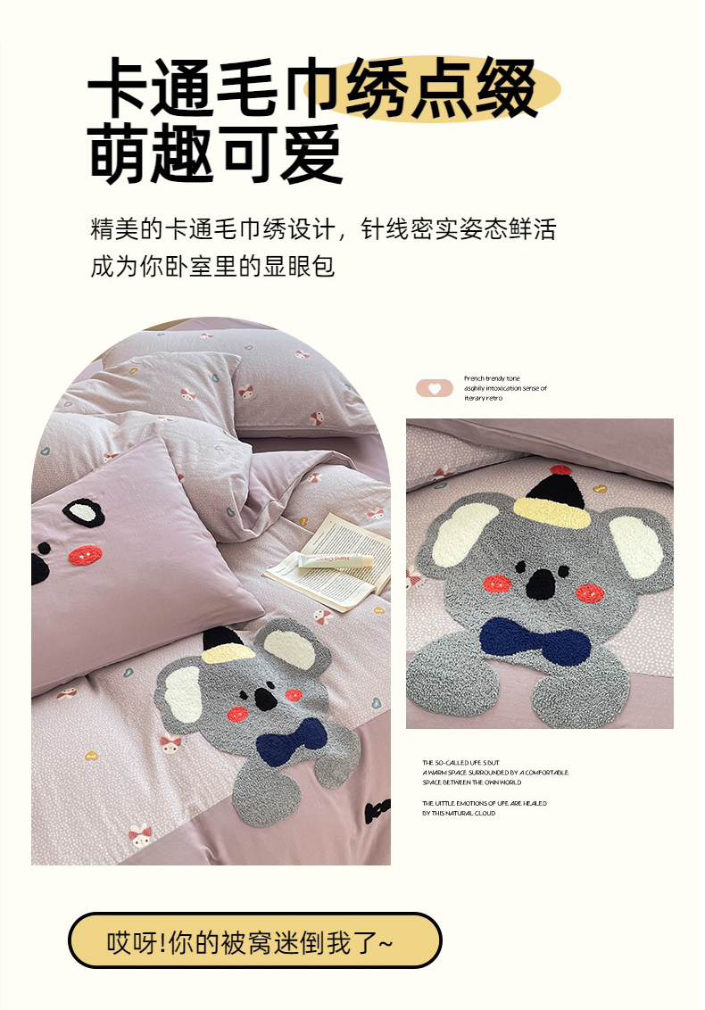 (总)寐居家纺 2025新款毛球毛巾绣牛奶绒四件套,毛球球·巴克汪仔,毛球球·豆蔻女孩,毛球球·奶黄拉布,毛球球·心动KT喵,组合图仅供展示不可下单