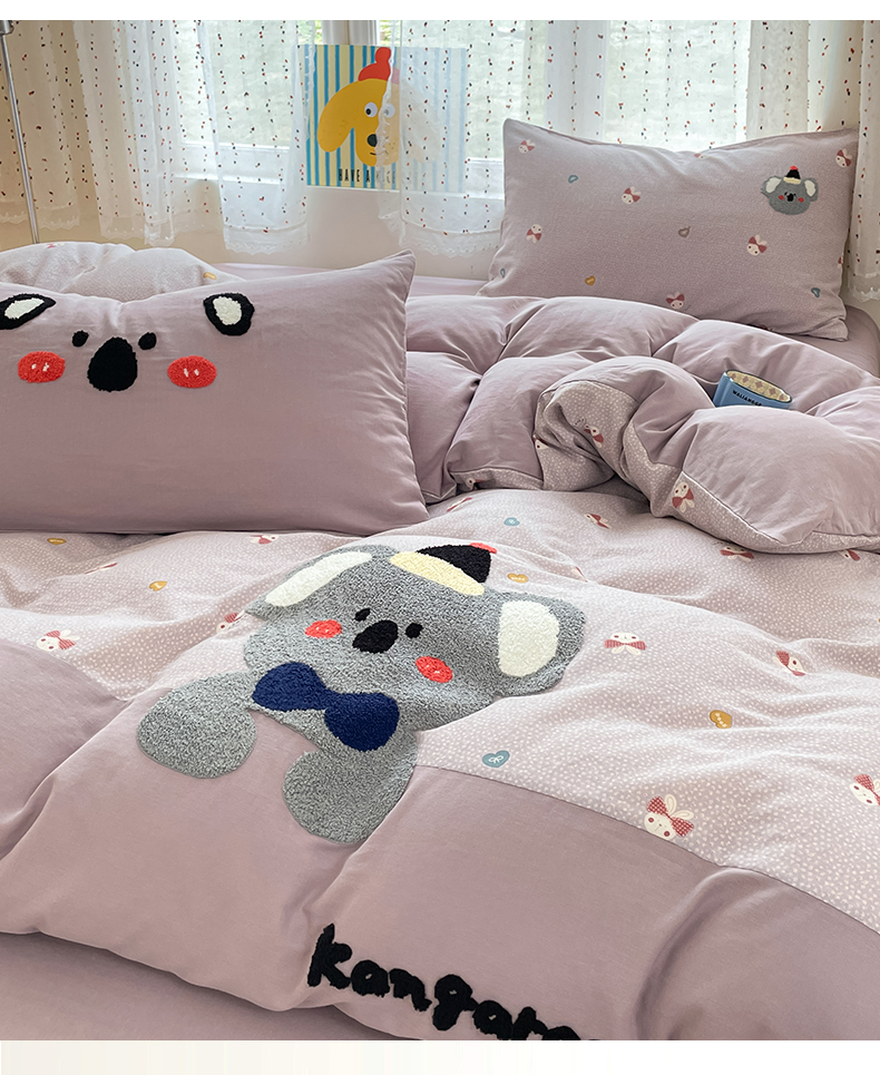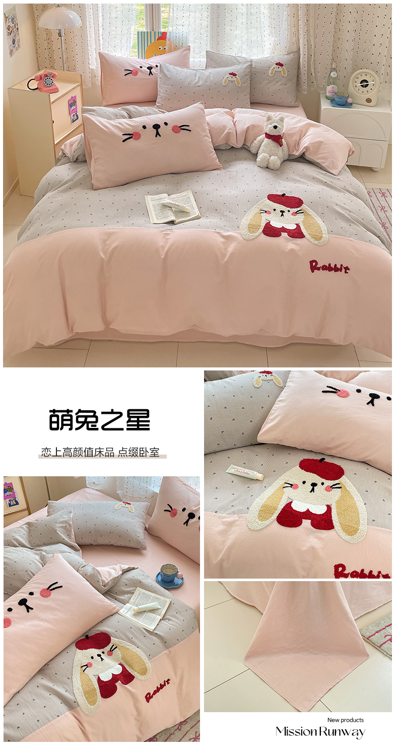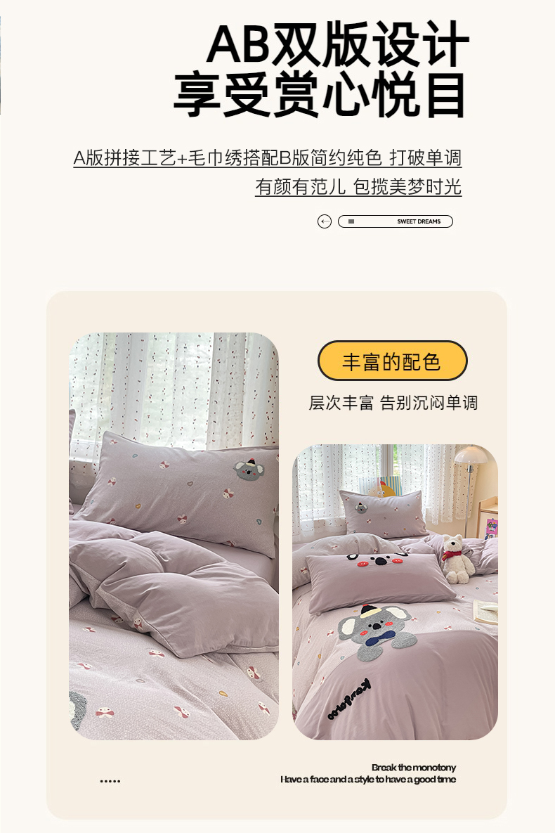 (总)寐居家纺 2025新款贴布绣高克重牛奶绒四件套,安吉拉喵,查理狗,粉糯kitty,皮皮布布