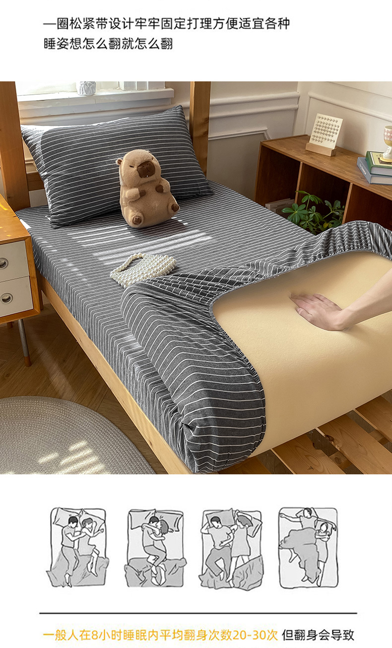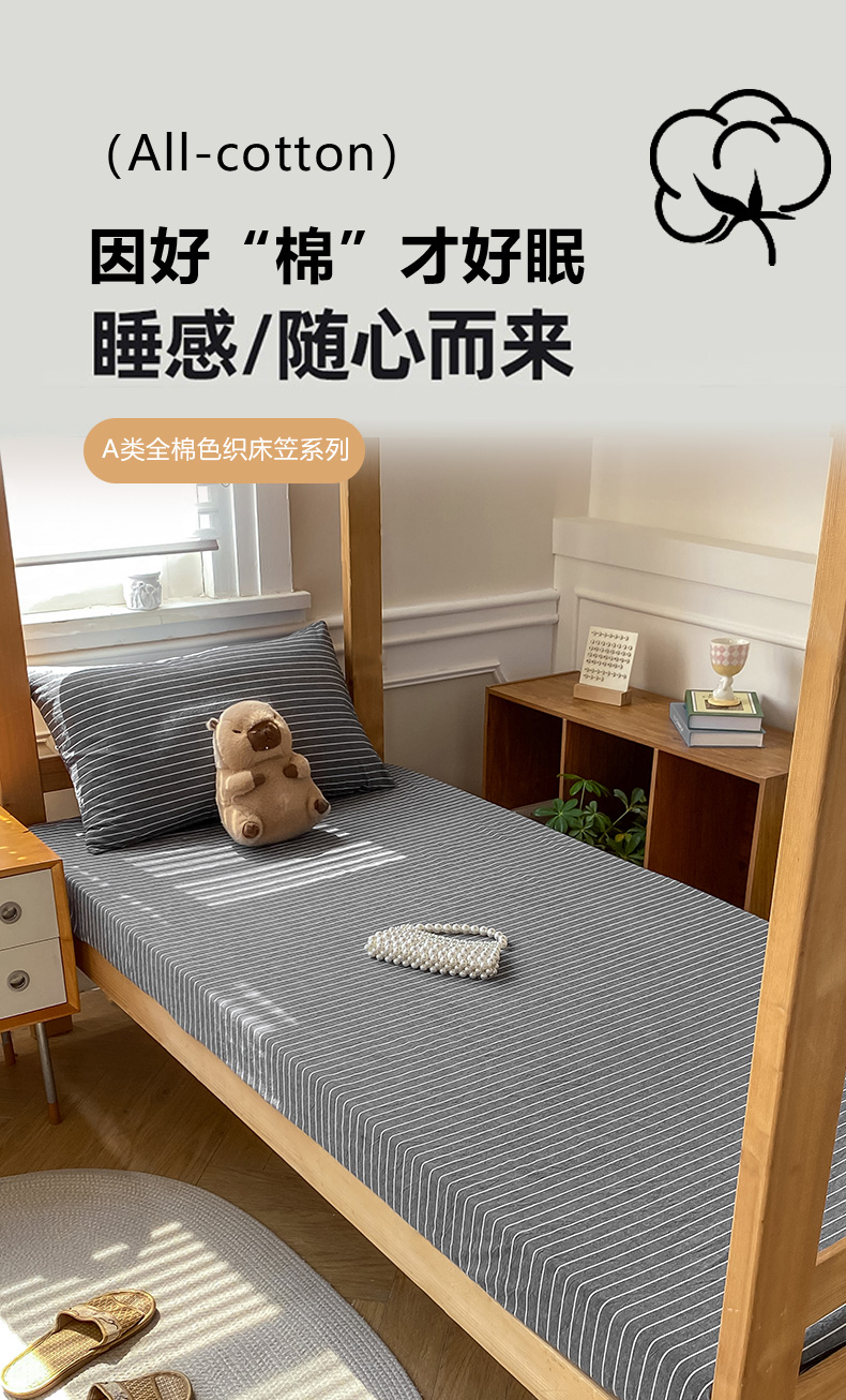 恋人优选 2025新款儿童学生宿舍上下铺全棉纯棉色织床笠单品单床笠床笠单件-无标款系列二 灰细条