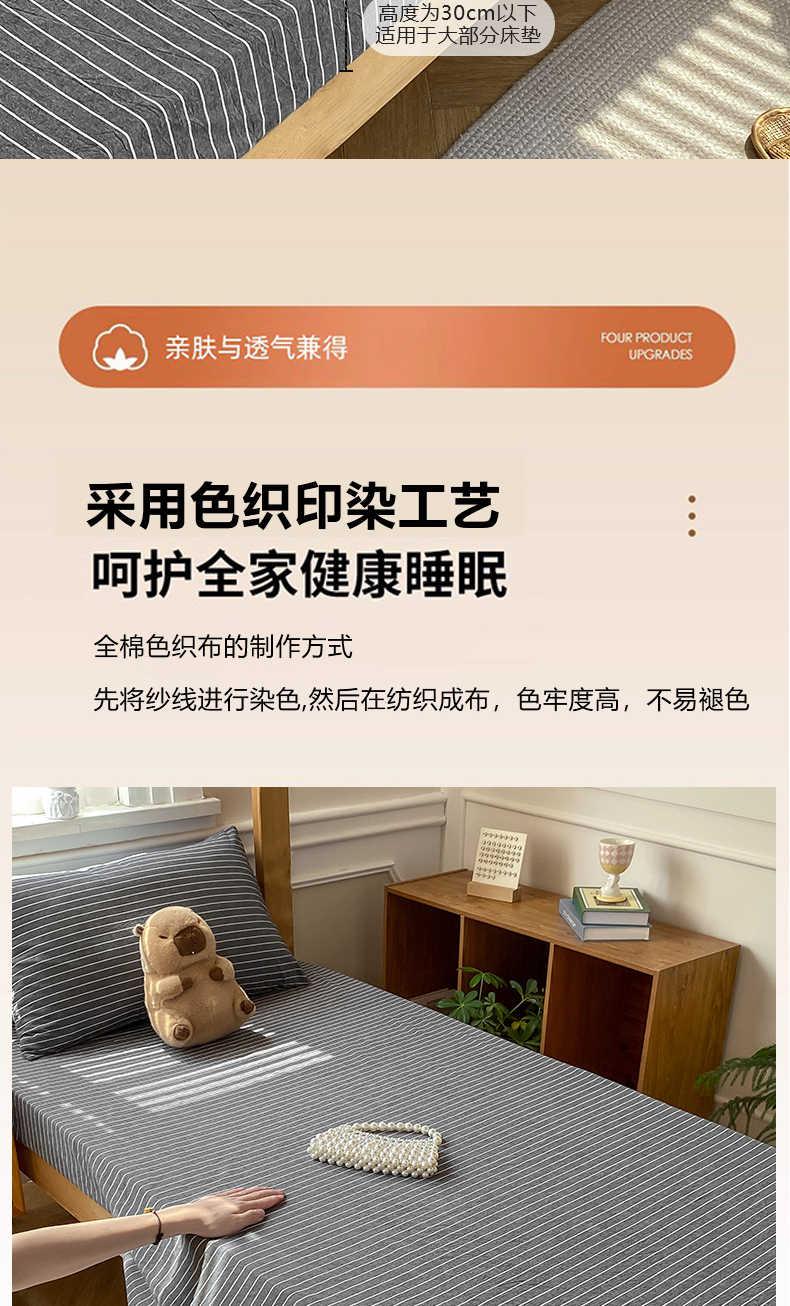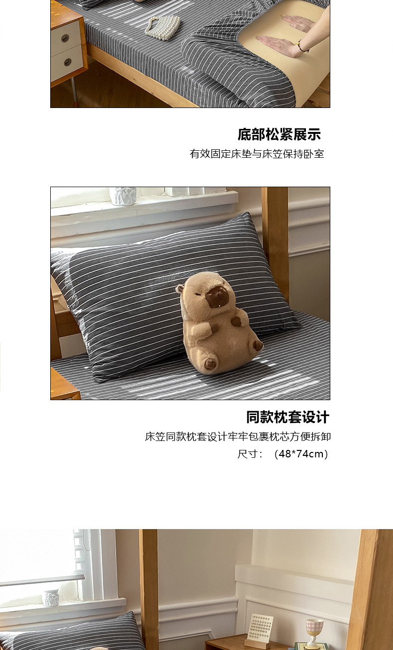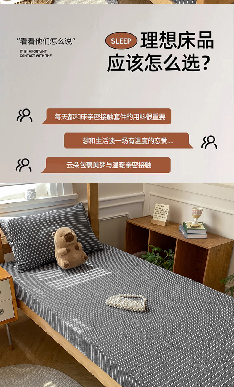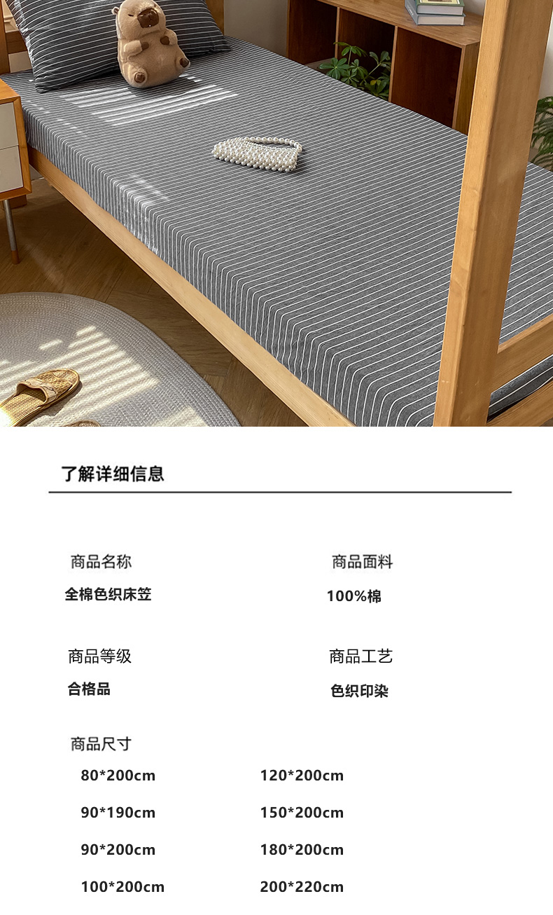 • 91家纺网 家纺一手货源 找家纺 恋人优选 2025新款儿童学生宿舍上下铺全棉纯棉色织床笠单品单床笠床笠单件-无标款系列二 灰细条