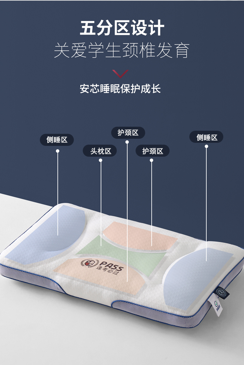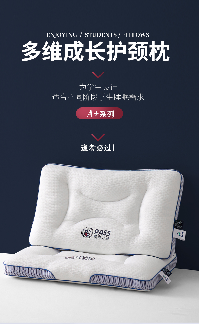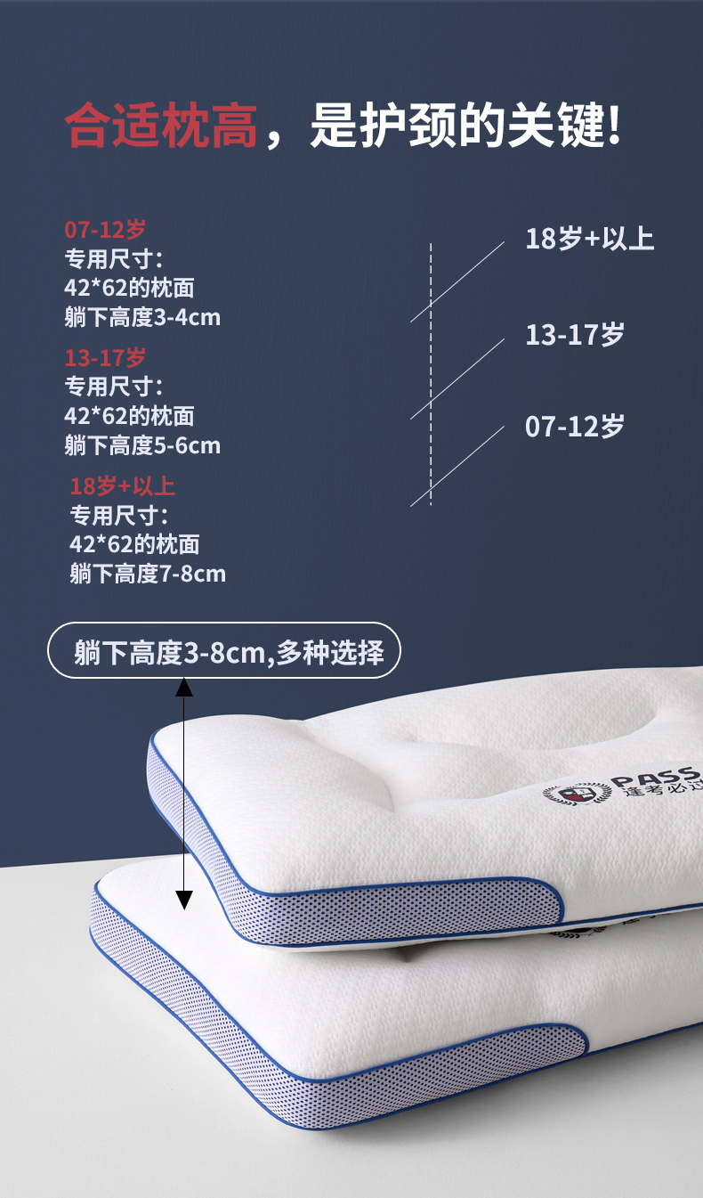 (总)圣之寐 2025新款英伦LOGO逢考必过针织空气层学生护颈枕枕头枕芯,低枕【适合05-12岁人群使用】,中枕【适合12-17岁左右人群使用】,高枕【适合18岁+以上人群使用】