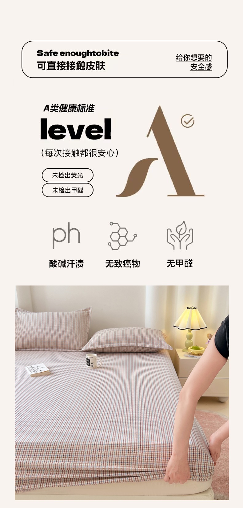 • 91家纺网 家纺一手货源 找家纺 梦舒羽 2025新款双层纱格子床笠防滑床罩床垫保护套榻榻米宿舍三件套 常规款-魅力蓝咖
