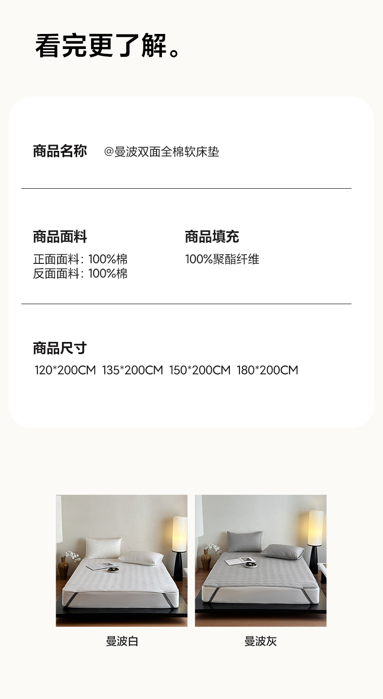商品名称:三味舒屋 2025新款双面全棉软床垫-曼波 曼波灰