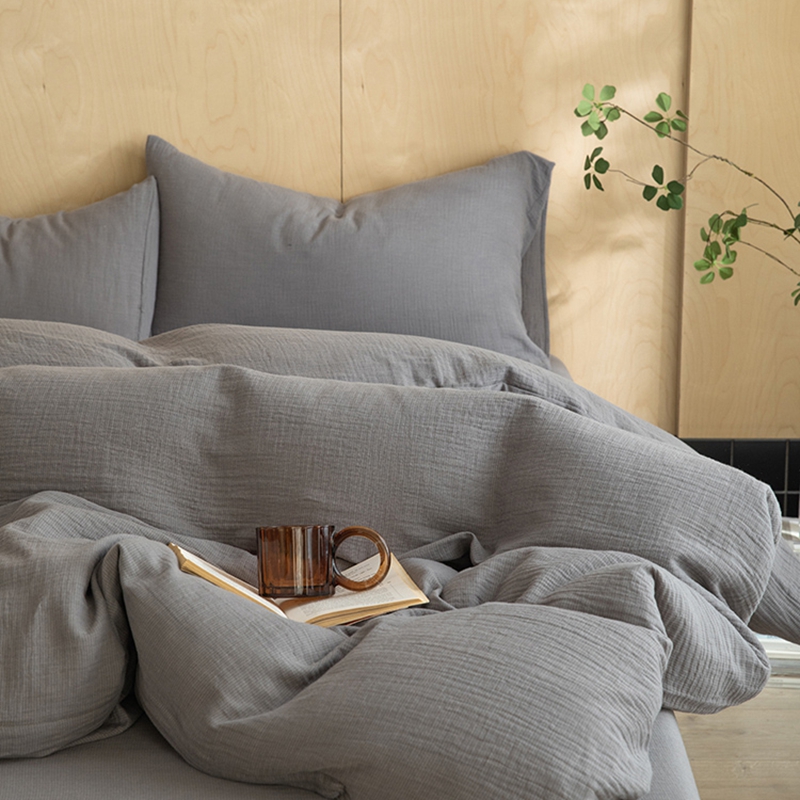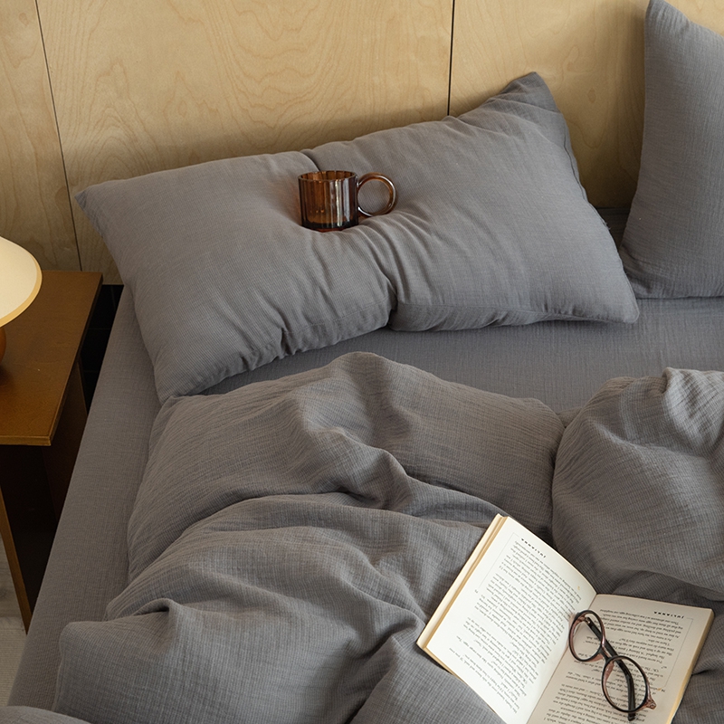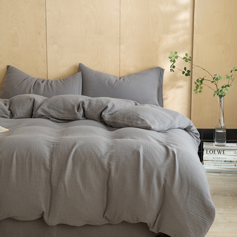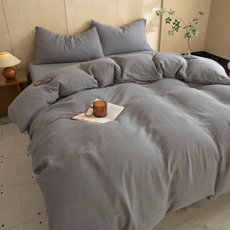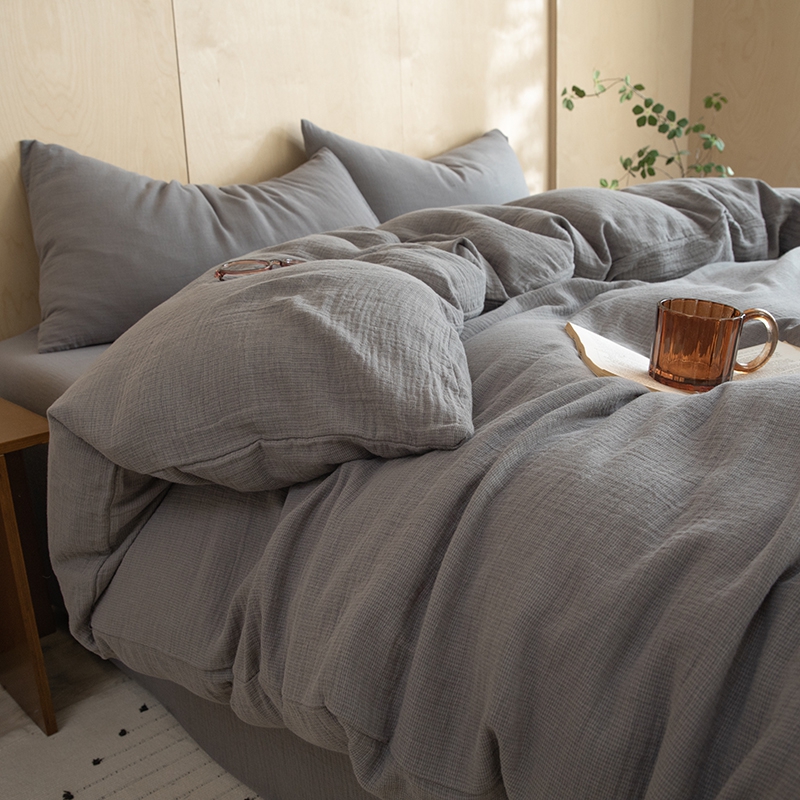 商品名称:棉小二 2025新款千鸟格全棉双层纱四件套 千鸟格-灰