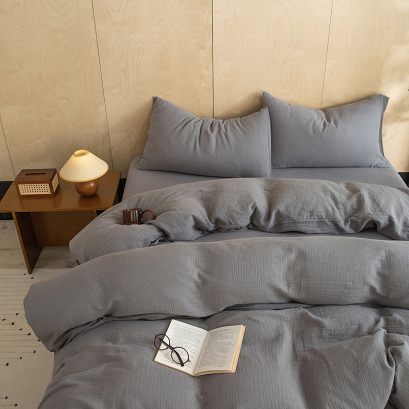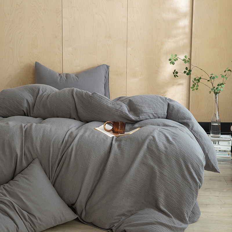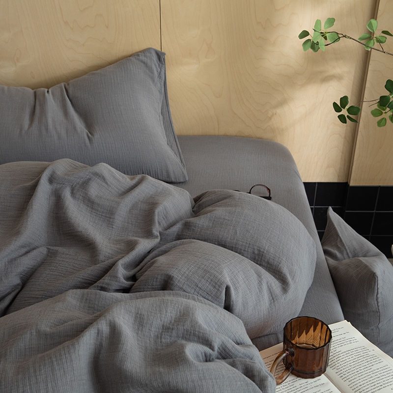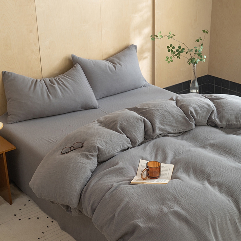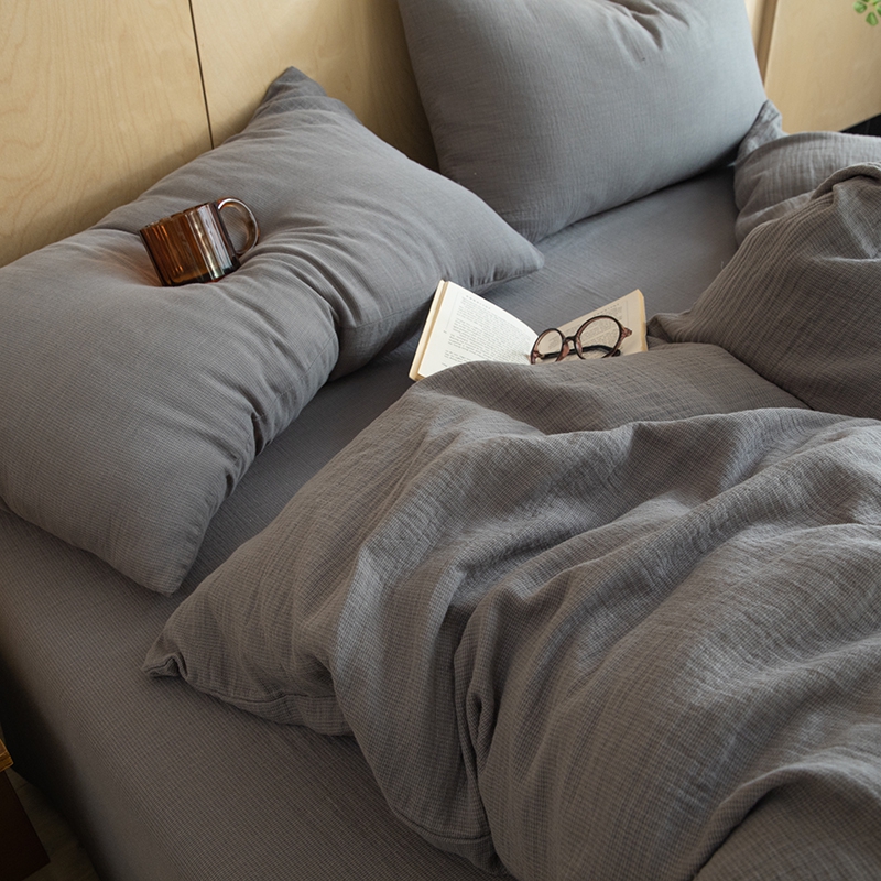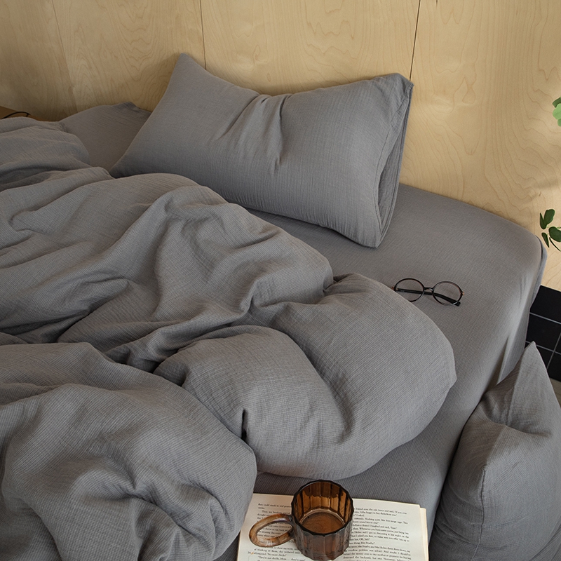 商品名称:棉小二 2025新款千鸟格全棉双层纱四件套 千鸟格-灰