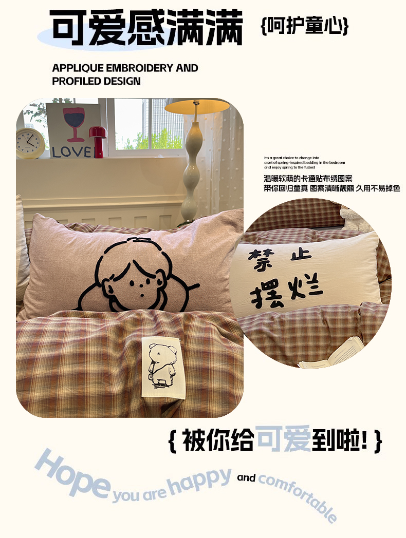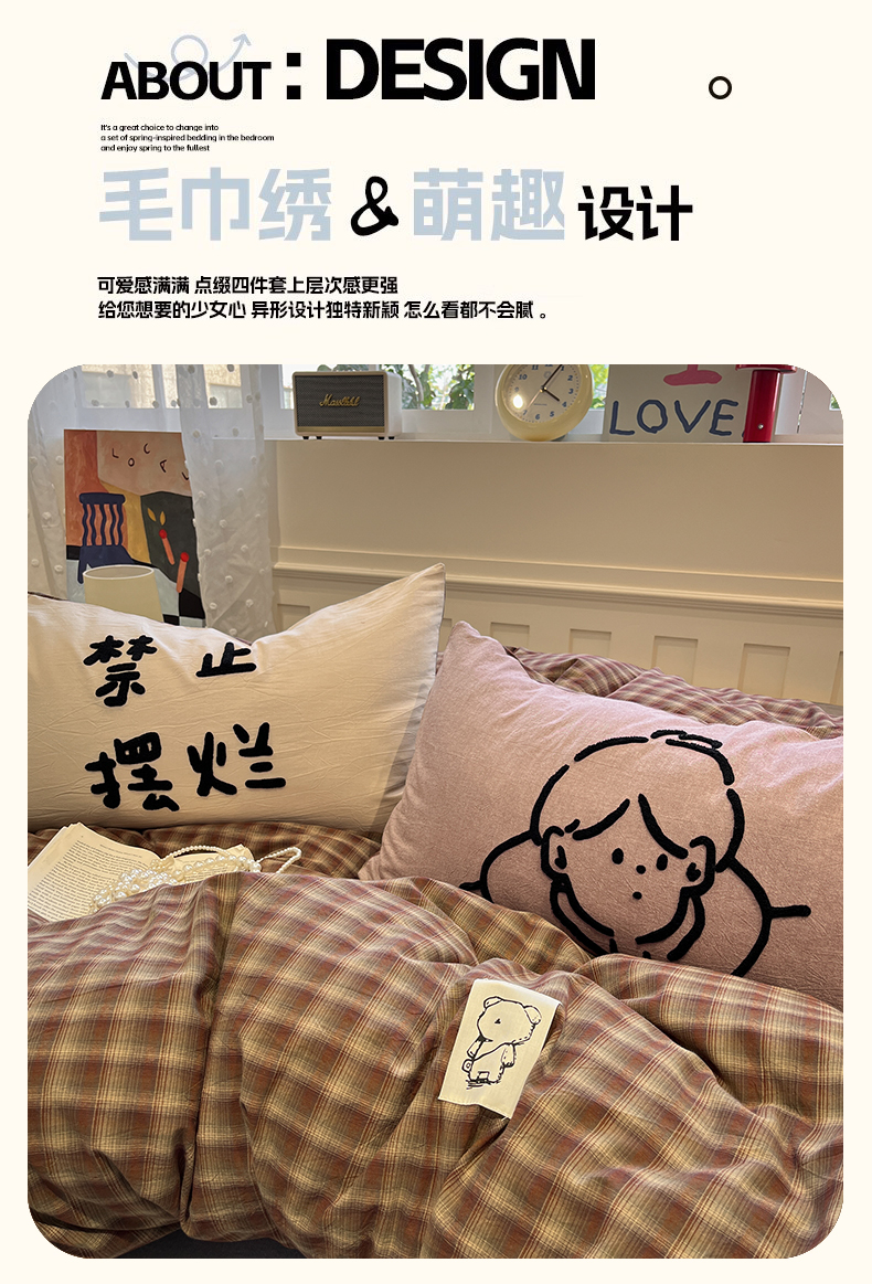 当前位置: 91家纺网 > 商品网购 > 床品套件 > 四件套 > 全棉普通四件套 > 花漾家居 2025新款无印宿舍简约全棉色织水洗棉毛巾绣四件套 红咖格