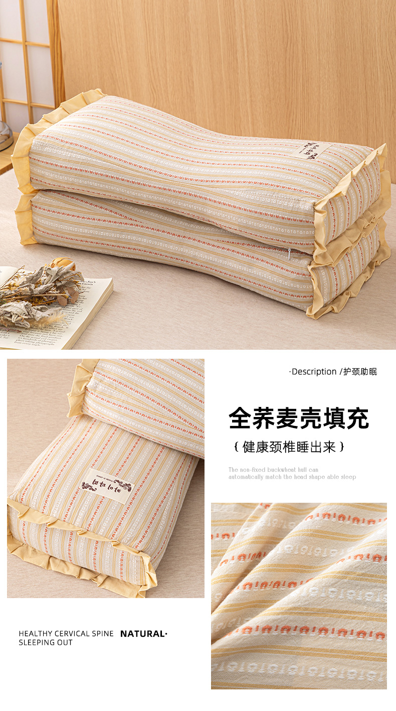 当前位置: 91家纺网 > 商品网购 > 枕头/枕芯/保健枕/颈椎枕 > 普通枕芯 > 织布人 2025新款荞麦枕全棉条纹花边护颈全荞麦壳枕头成人家用助眠硬枕芯 全棉条纹花边护颈枕-咖色 50x20cm/只