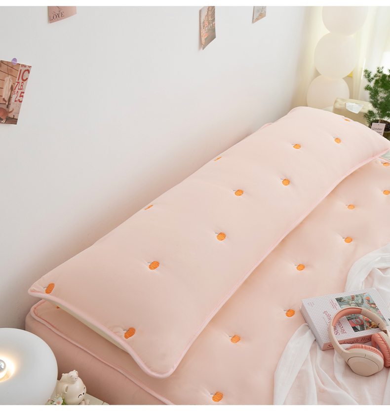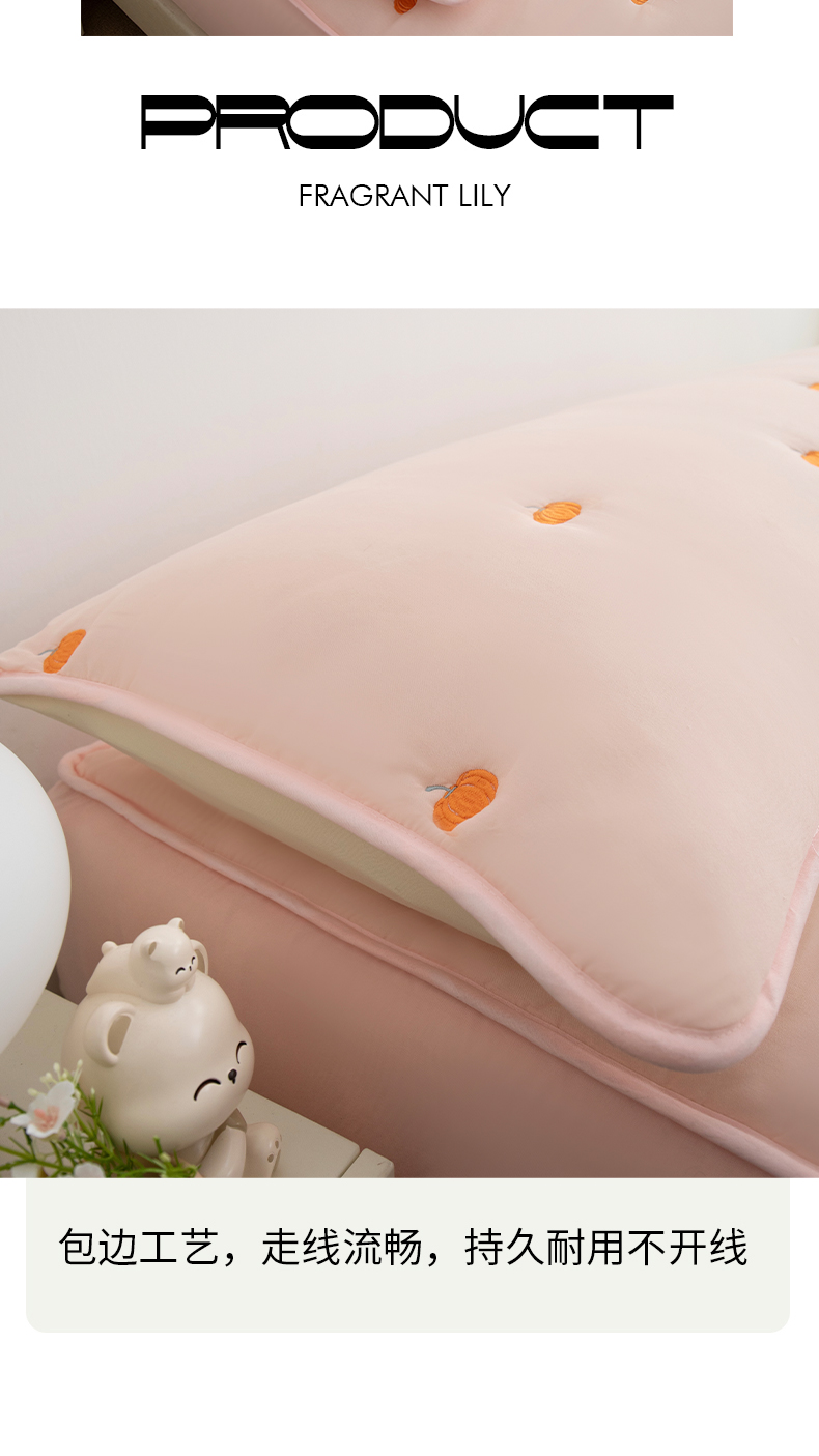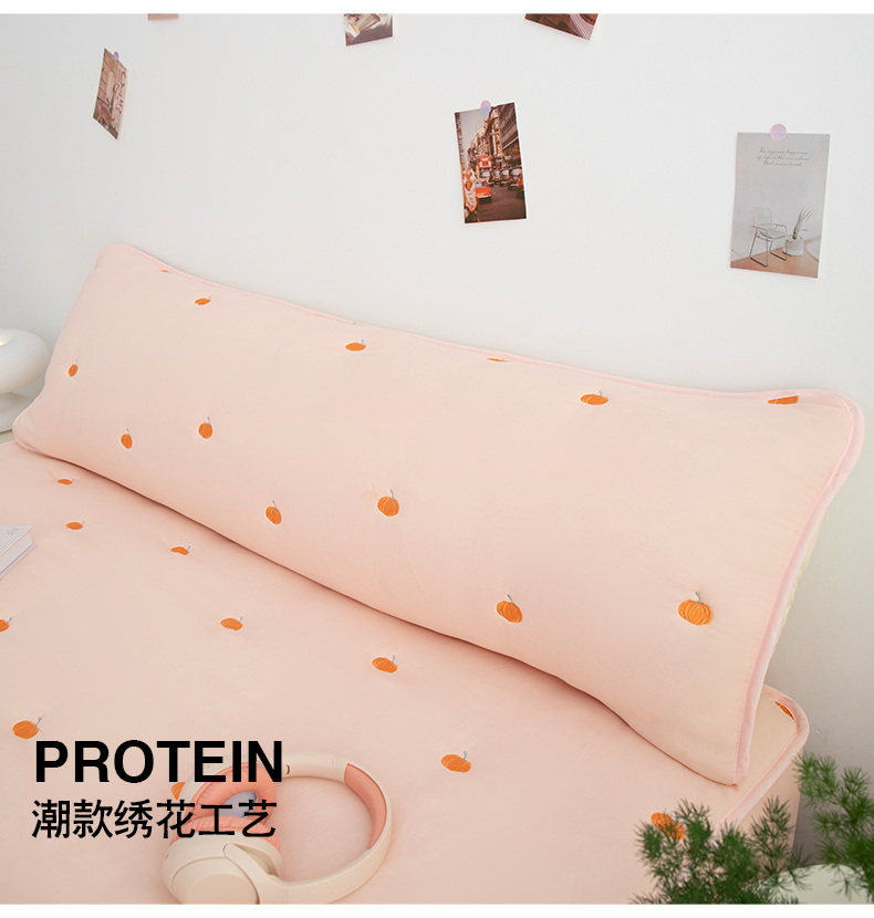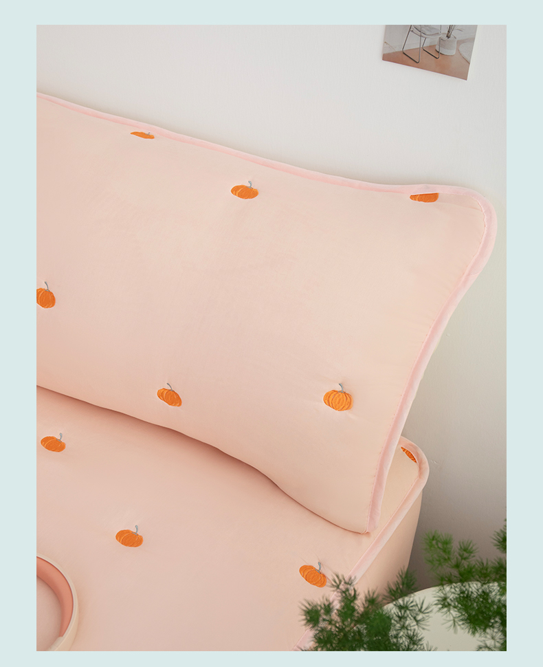 商品名称:(总)乐居家纺 2025新款A类夹棉绣花双人枕套-南瓜