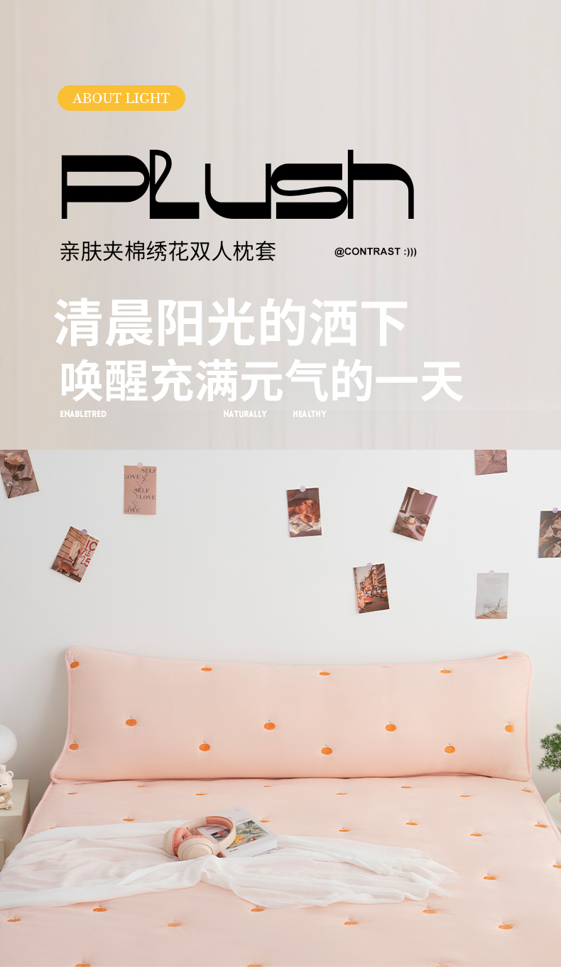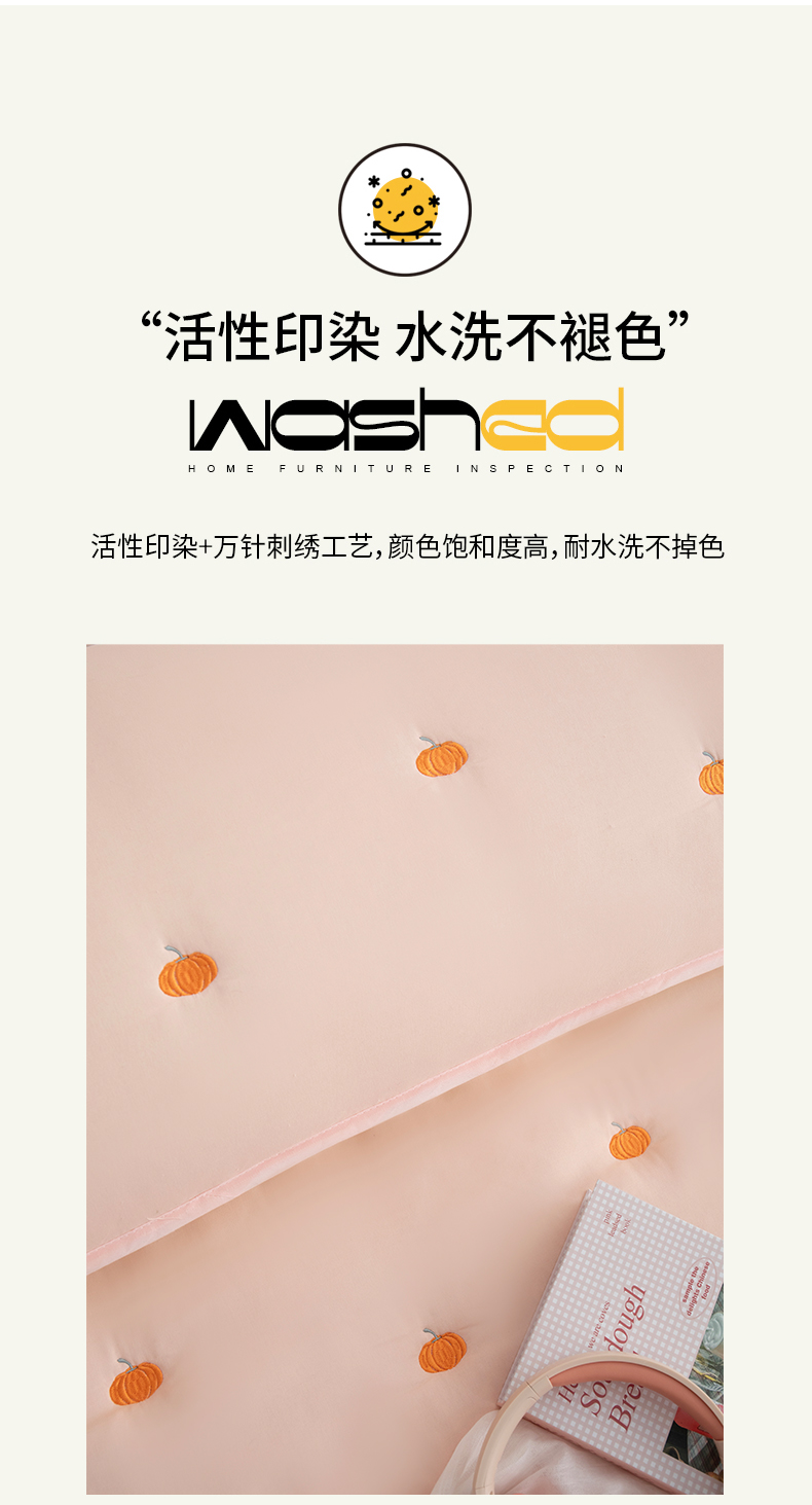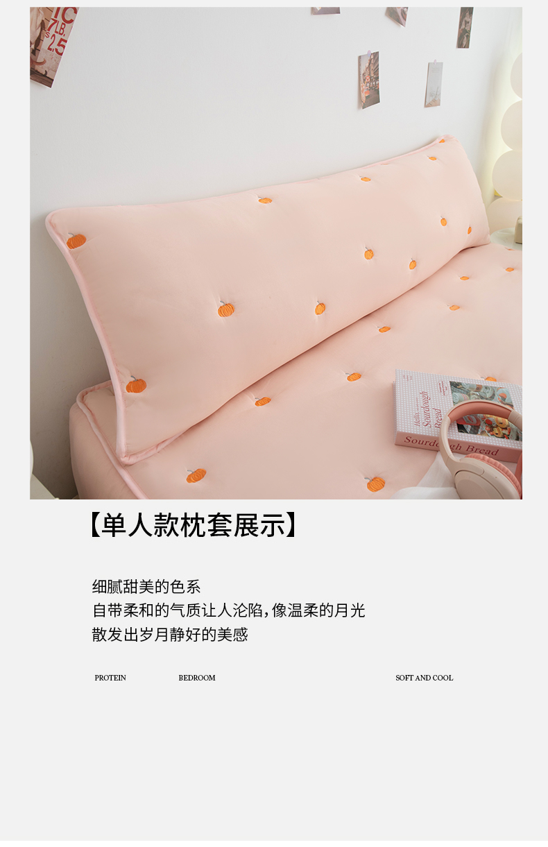 商品名称:(总)乐居家纺 2025新款A类夹棉绣花双人枕套-南瓜