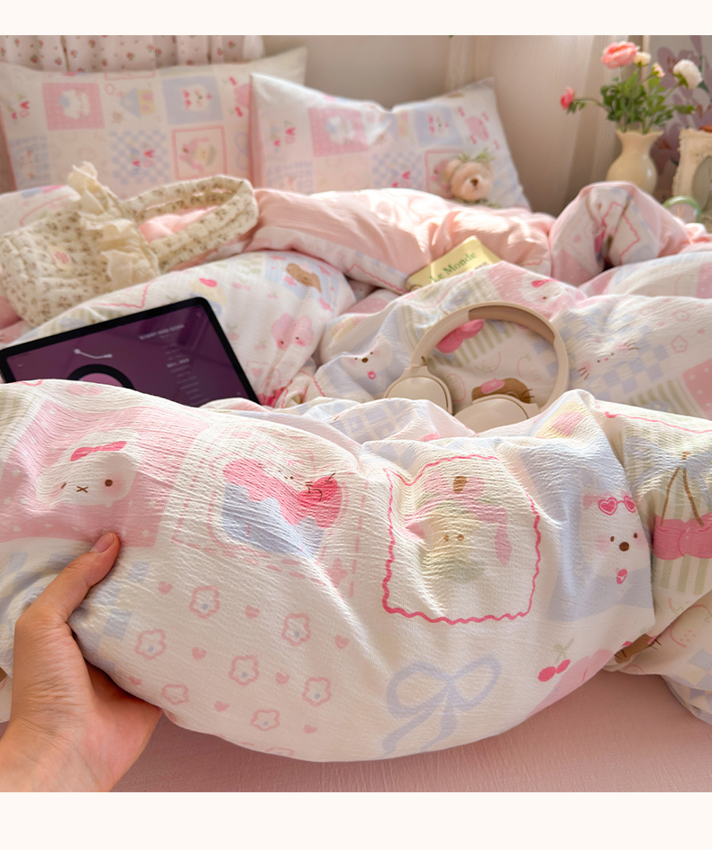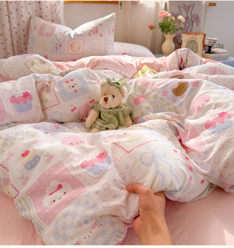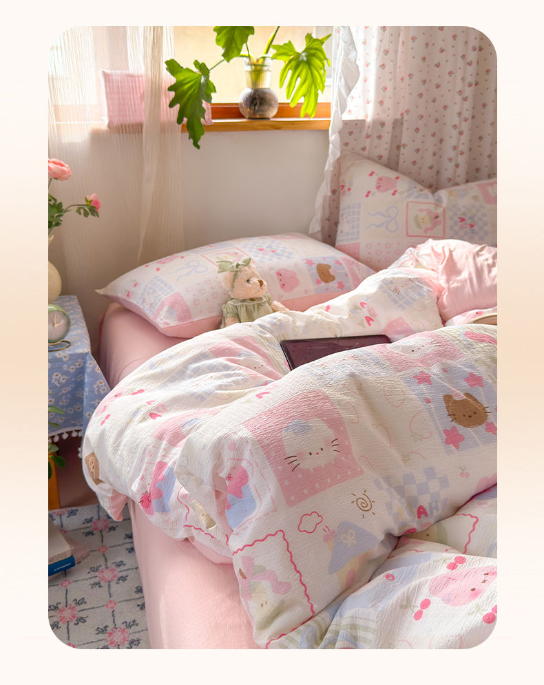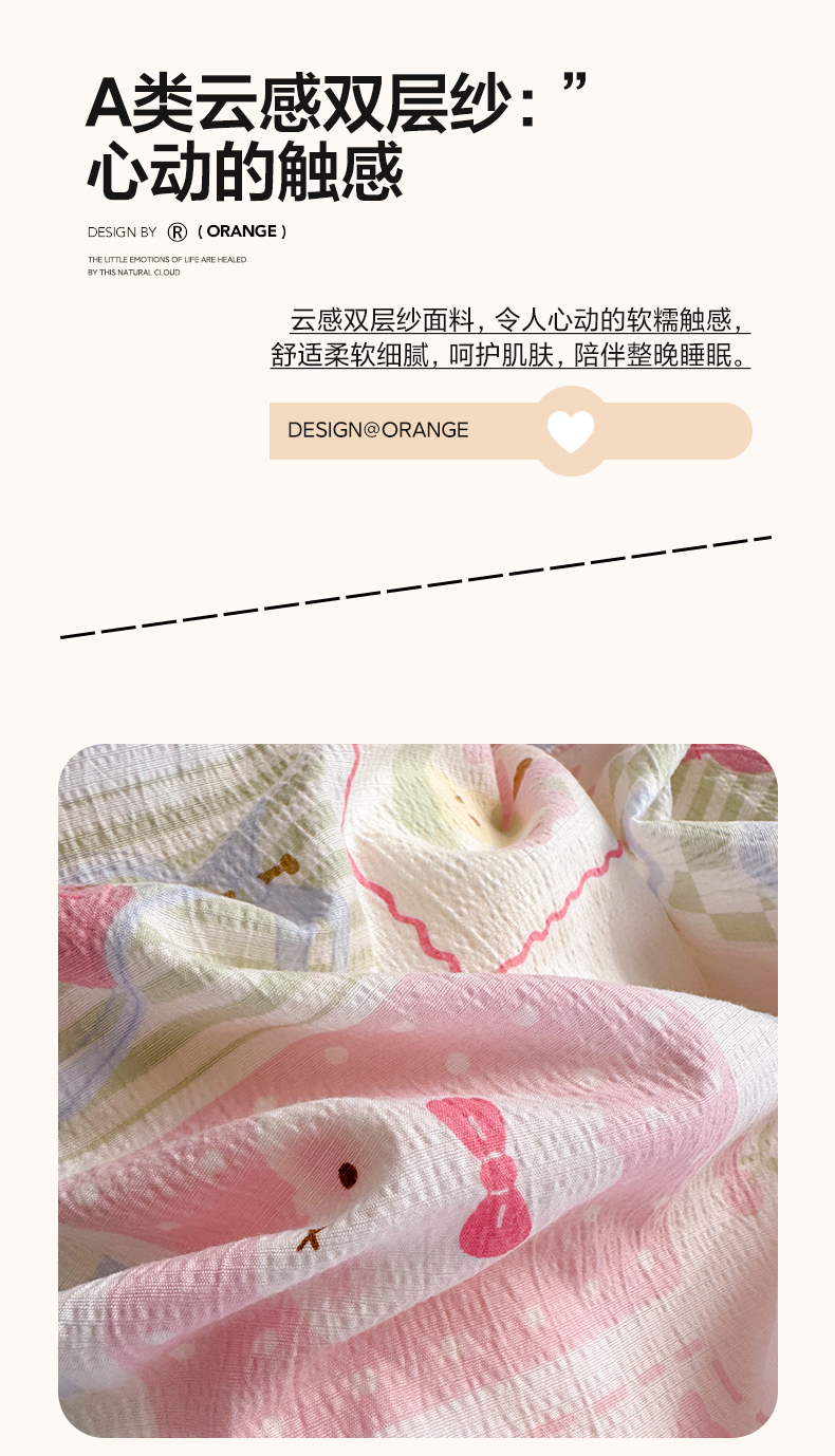 当前位置: 91家纺网 > 商品网购 > 床品套件 > 四件套 > 双层纱四件套 > 罗亿家纺 2025新款云感双层纱印花四件套 童话-奶油块块
