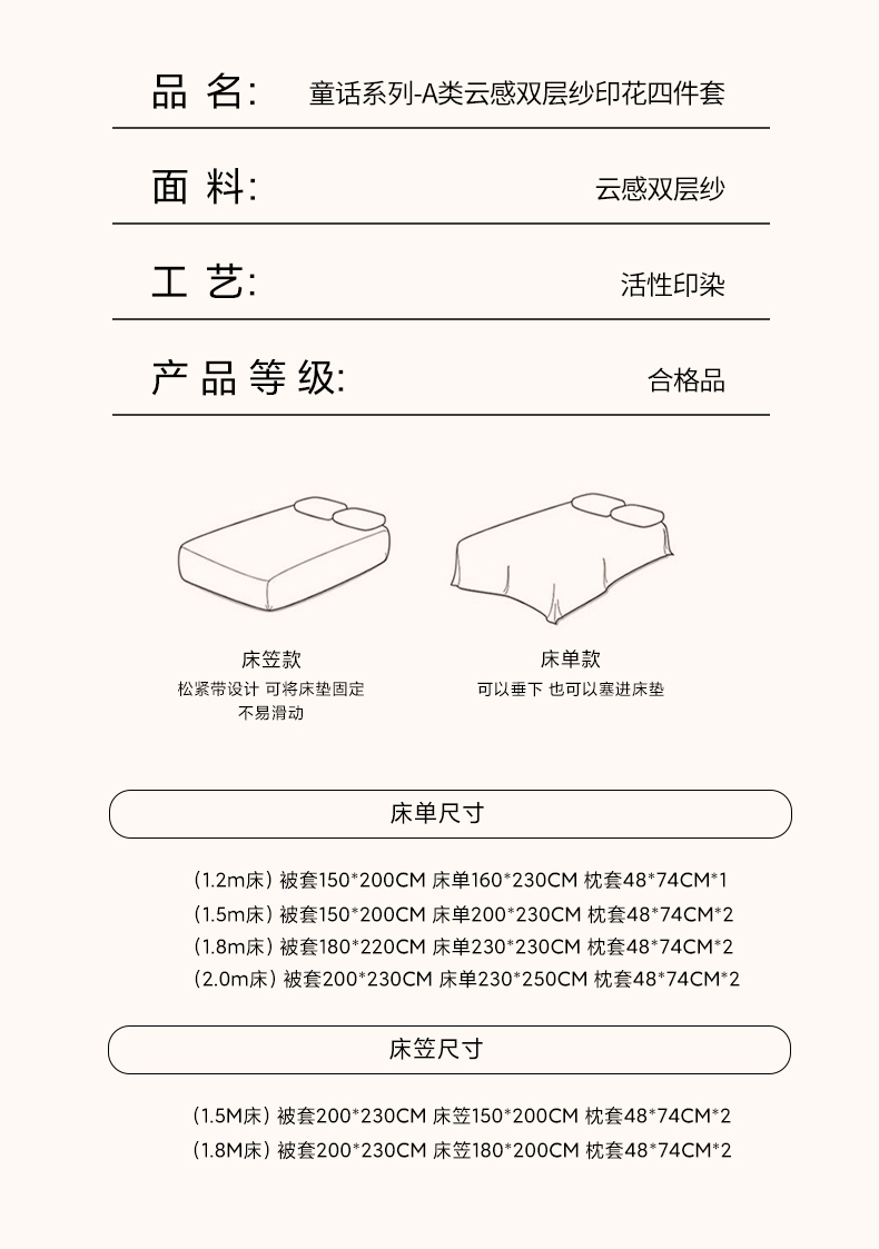 【床笠款】1.8四件套-被套200x230 | ¥58.00 |