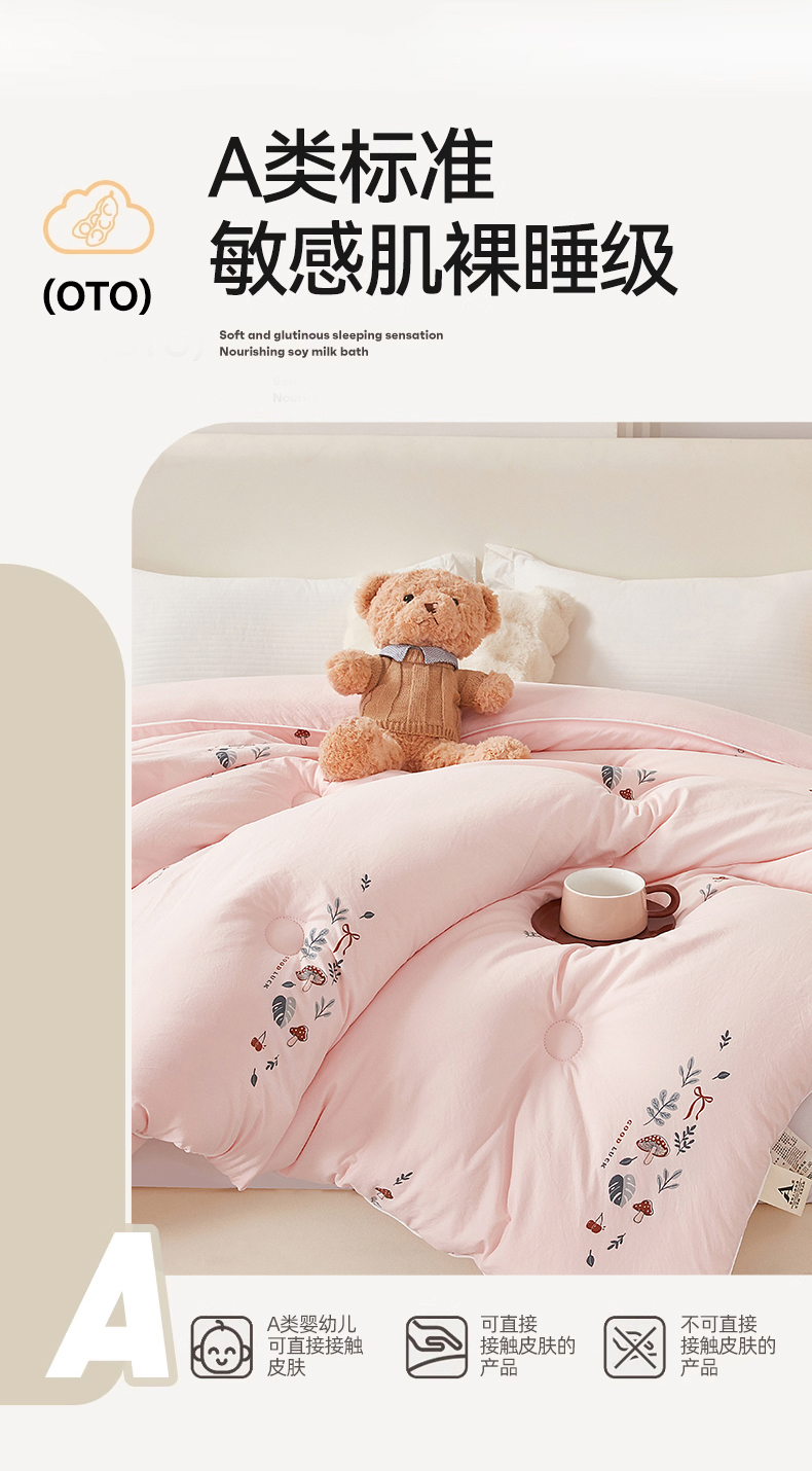 尊妙被业 2025新款棉小柔大豆被被子被芯春秋被子母被直播批发夏被 春之笙-粉色