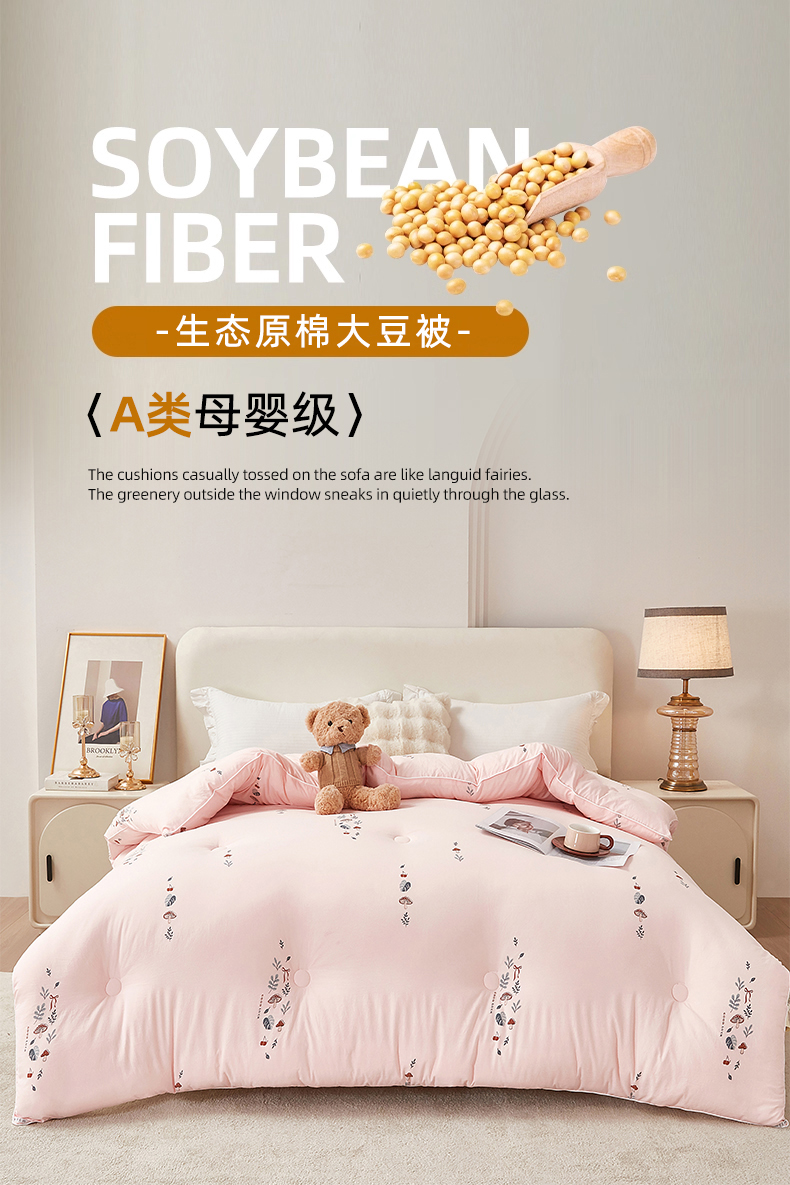 • 91家纺网 家纺一手货源 找家纺 尊妙被业 2025新款棉小柔大豆被被子被芯春秋被子母被直播批发夏被 春之笙-粉色