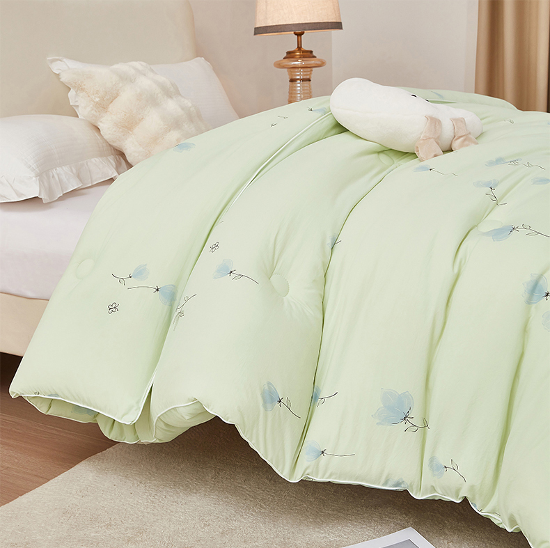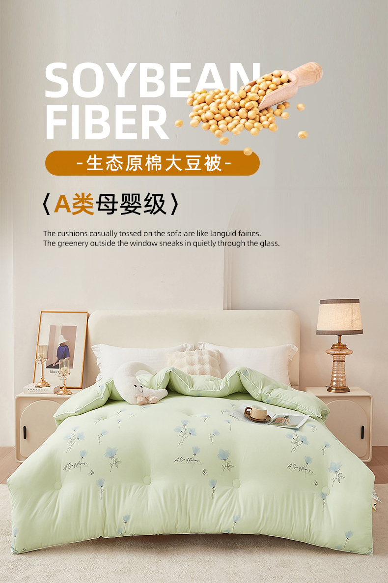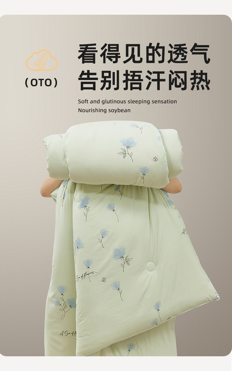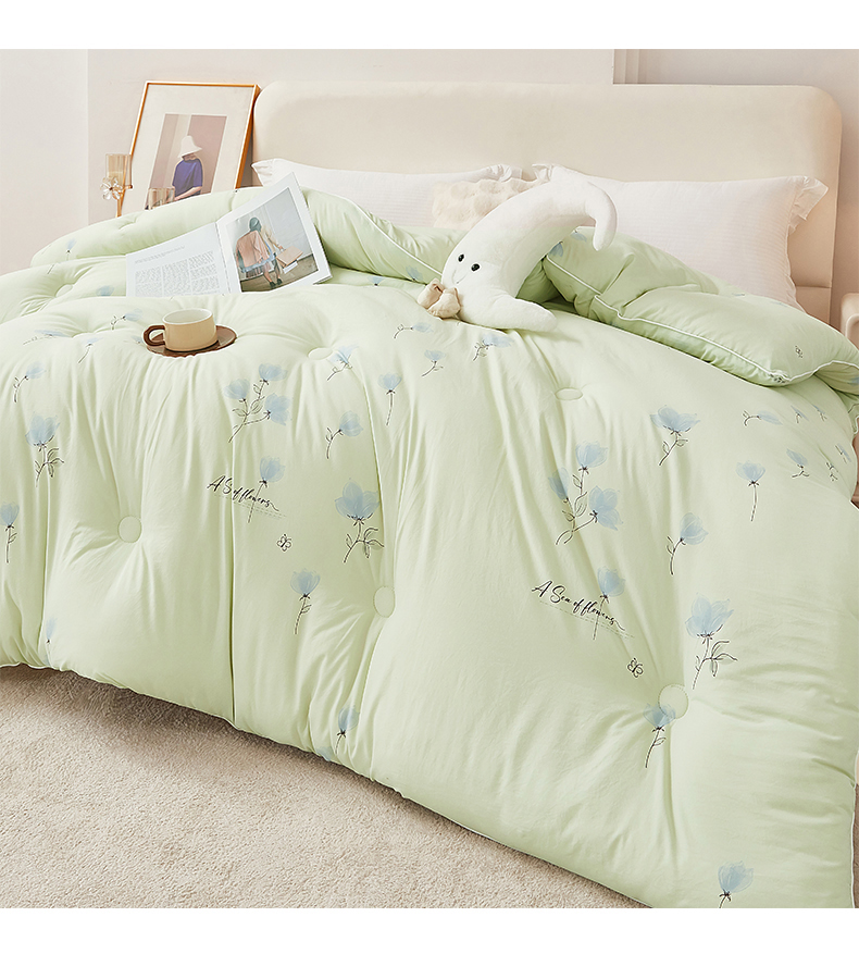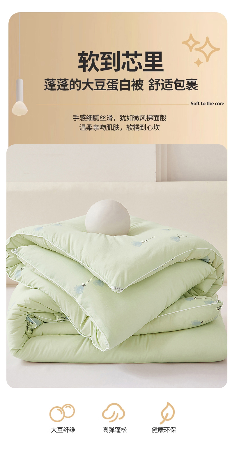 • 91家纺网 家纺一手货源 找家纺 尊妙被业 2025新款棉小柔大豆被被子被芯春秋被子母被直播批发夏被 虞美人-浅绿