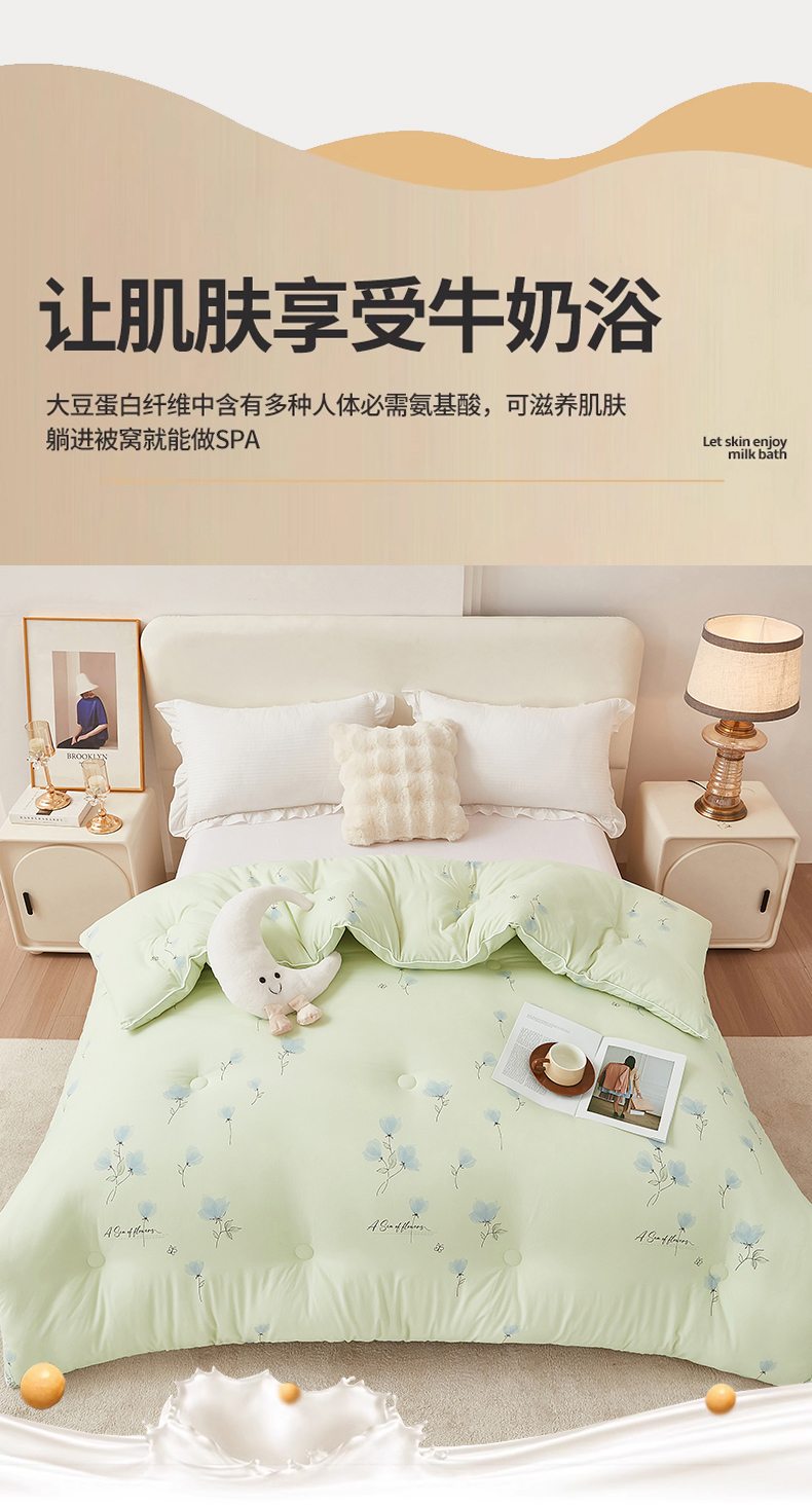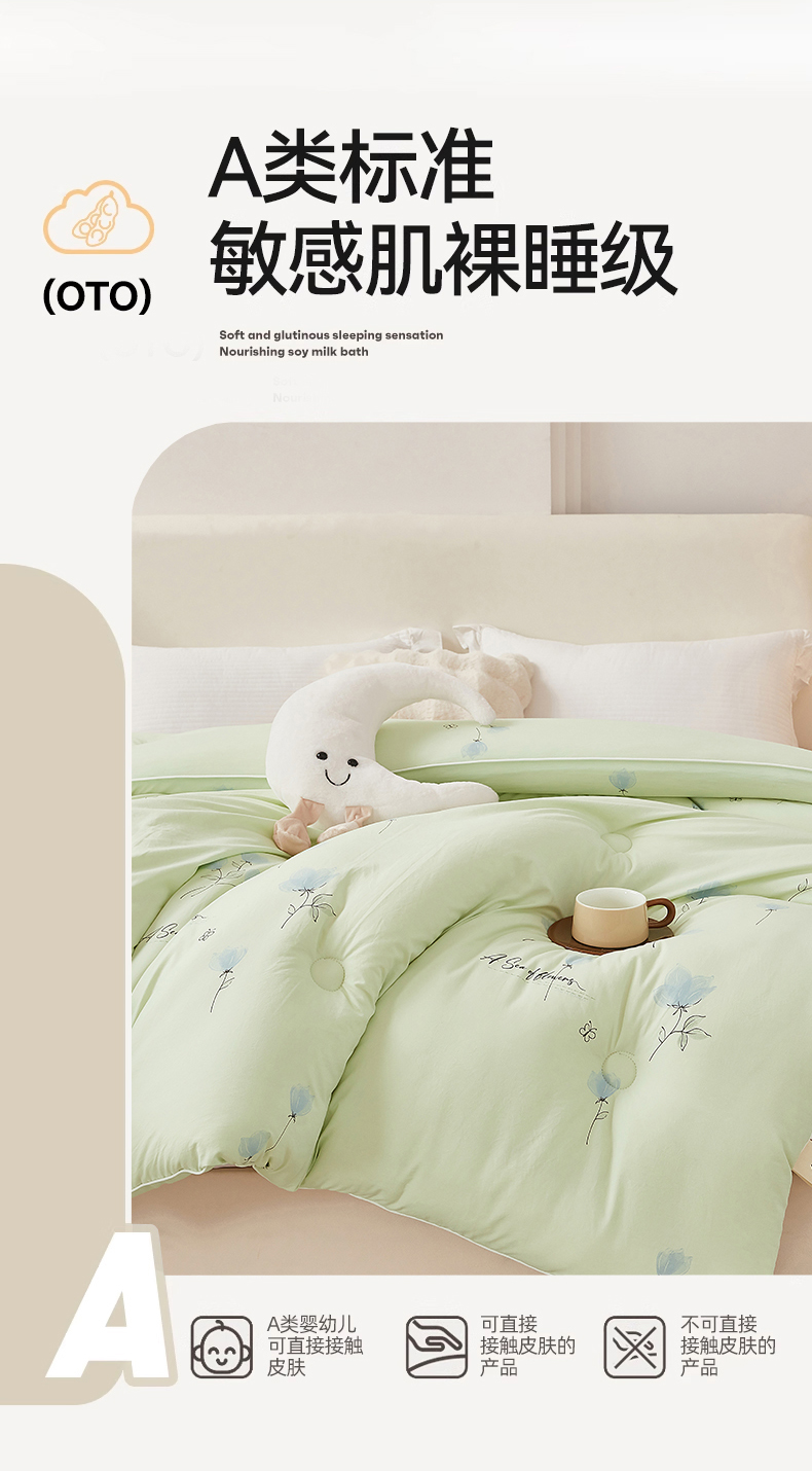 尊妙被业 2025新款棉小柔大豆被被子被芯春秋被子母被直播批发夏被 虞美人-浅绿