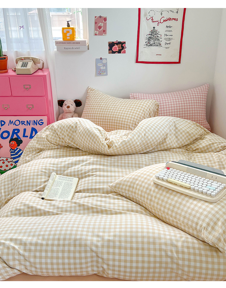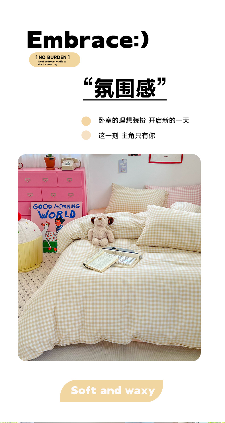 当前位置: 91家纺网 > 商品网购 > 床品套件 > 四件套 > 双层纱四件套 > 红嘴企鹅 2025新款云感提花双层纱印花系列四件套 格子咖