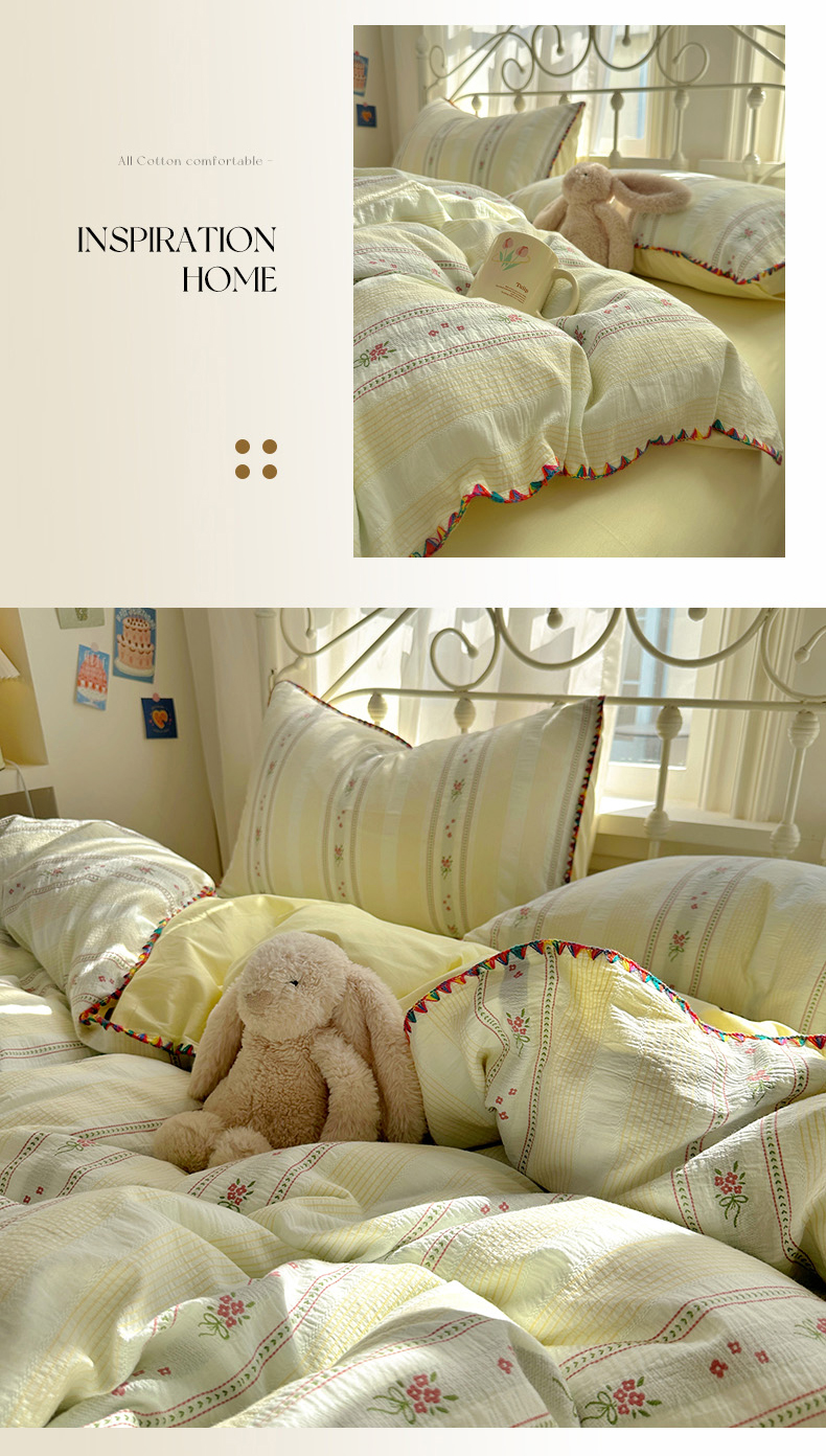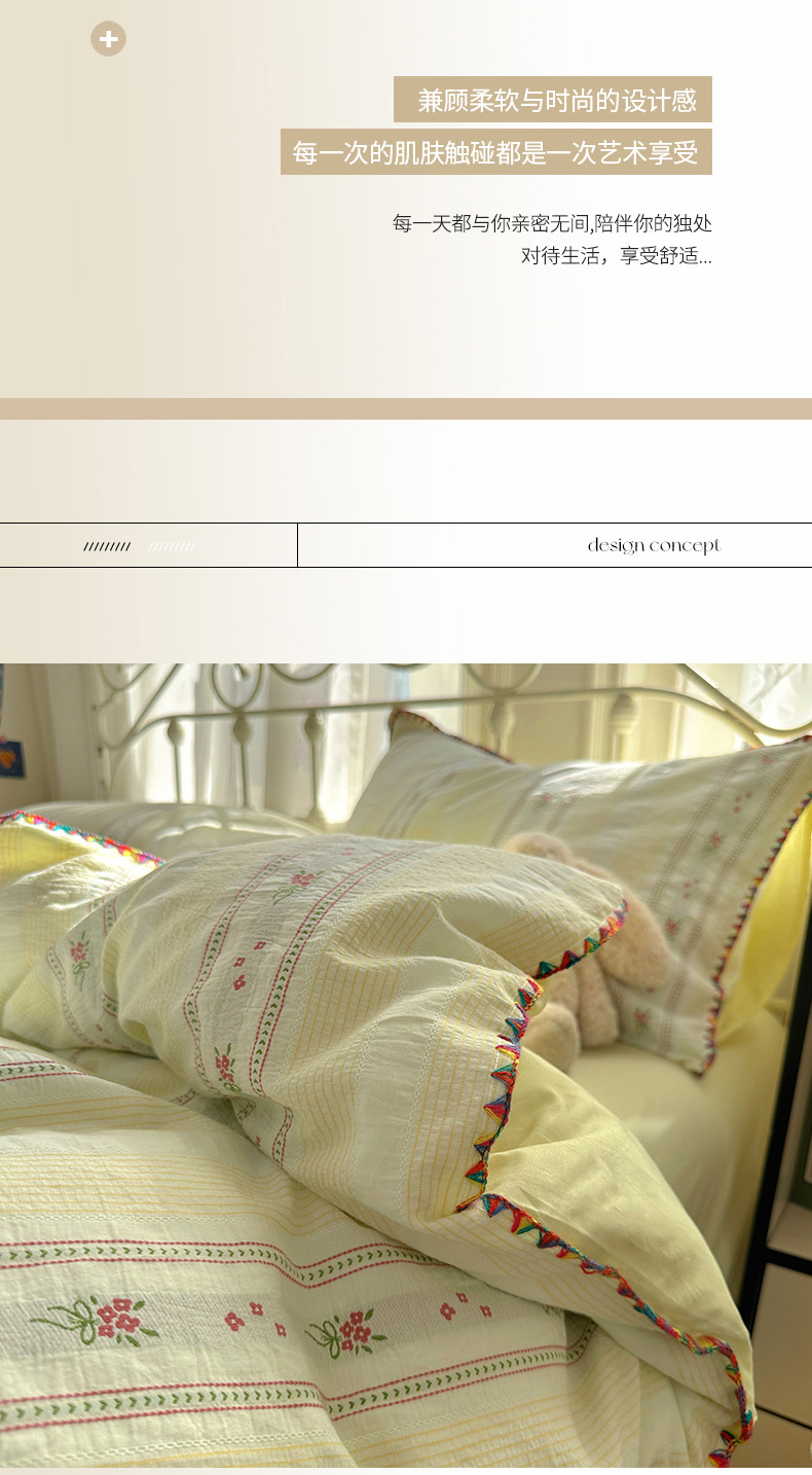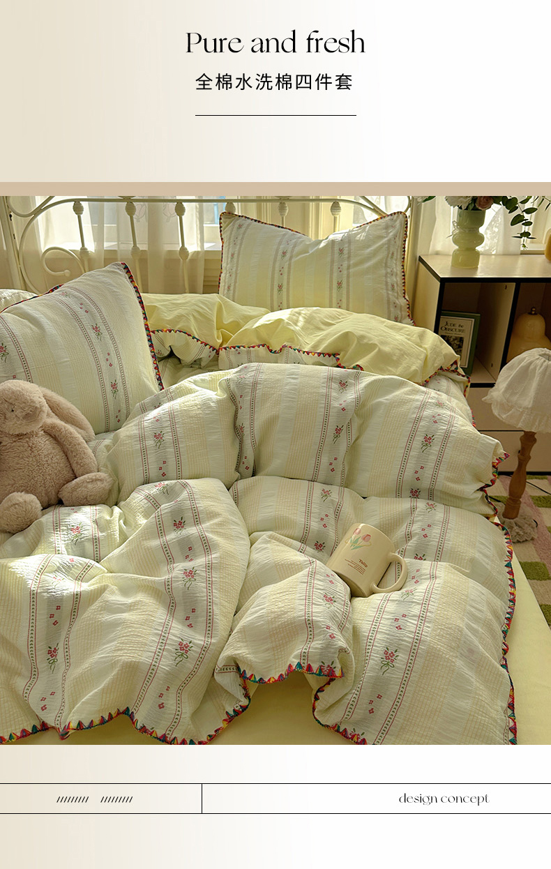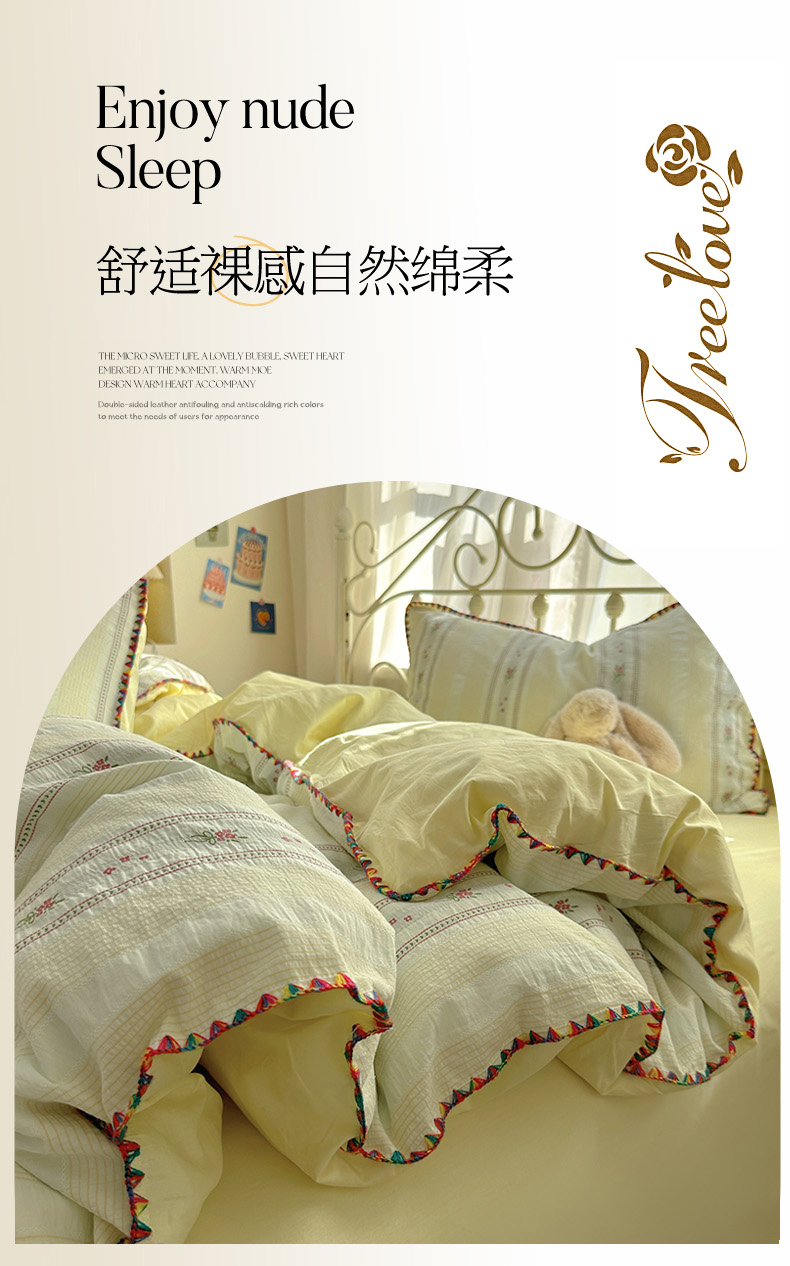 田野 2025新款全棉水洗棉提花四件套 飘带