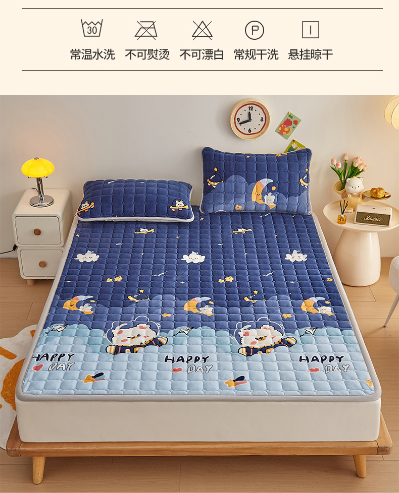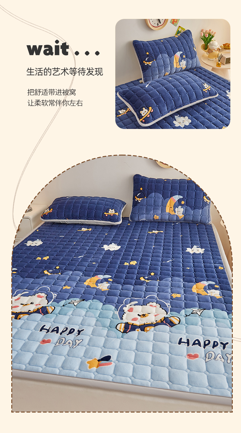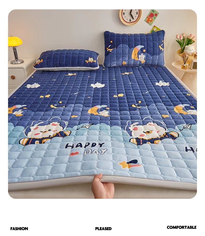 • 91家纺网 家纺一手货源 找家纺 奇丝雅 2025新款A类牛奶绒夹棉印花床褥床垫家用软垫床护垫-大床款 月亮熊