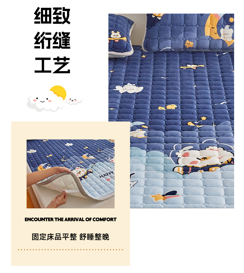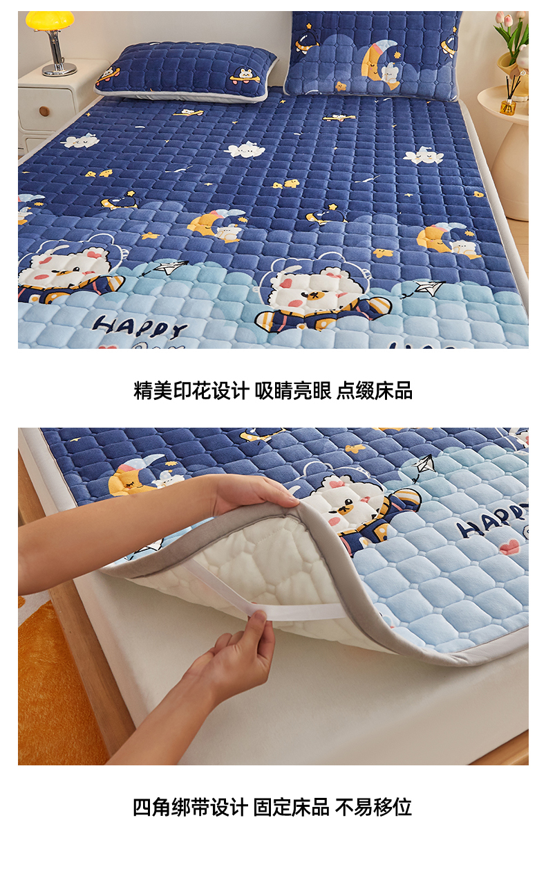 当前位置: 91家纺网 > 商品网购 > 床垫/床褥 > 奇丝雅 2025新款A类牛奶绒夹棉印花床褥床垫家用软垫床护垫-大床款 月亮熊