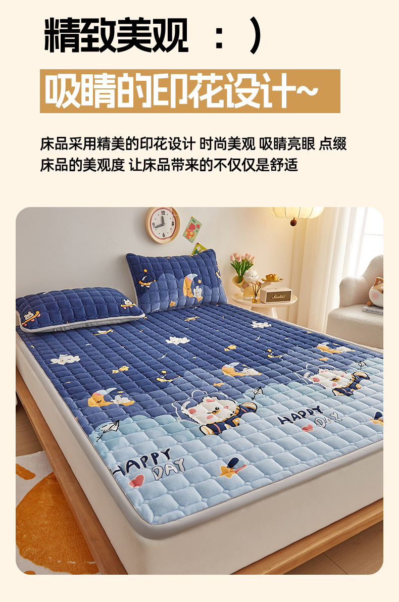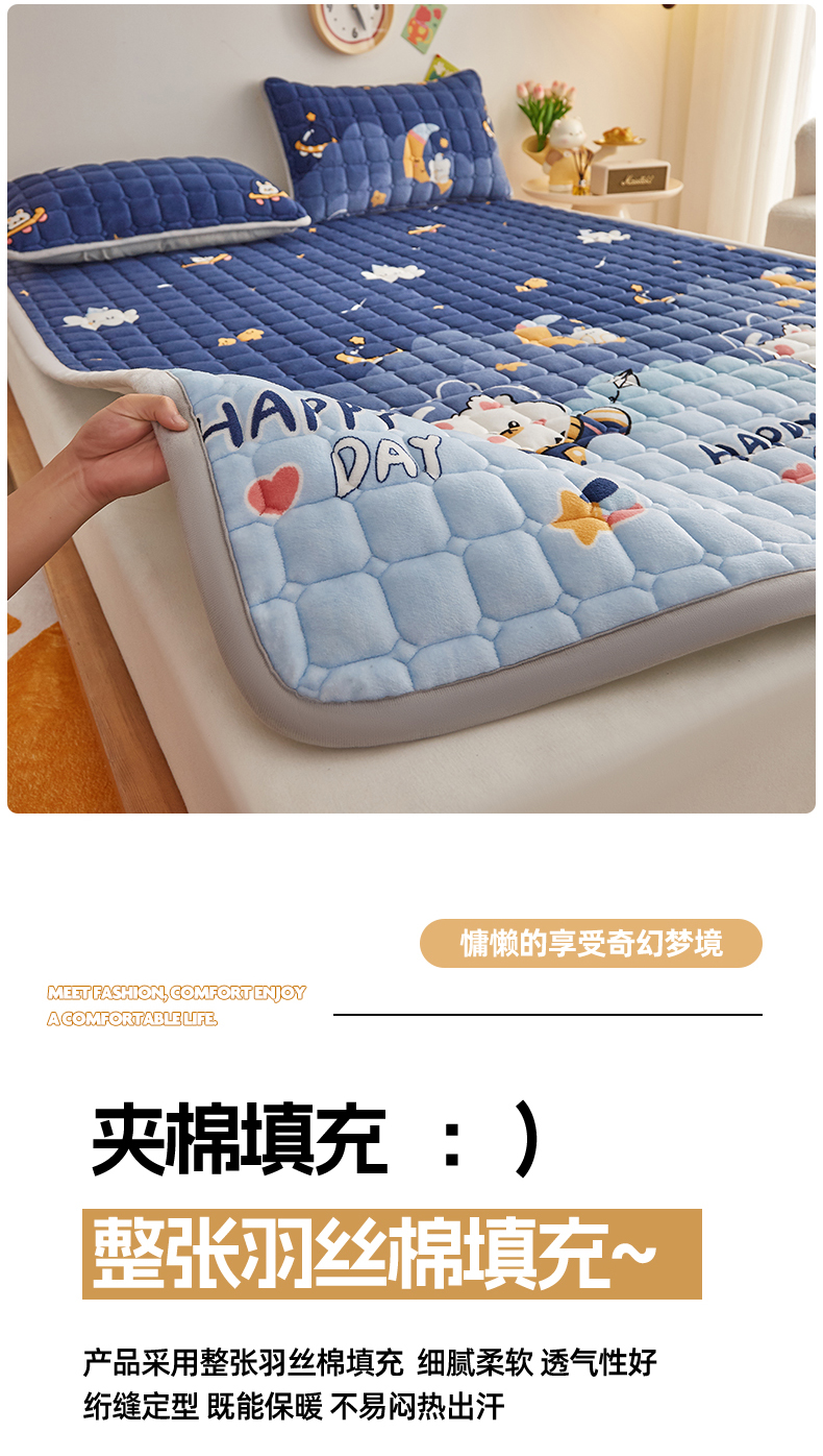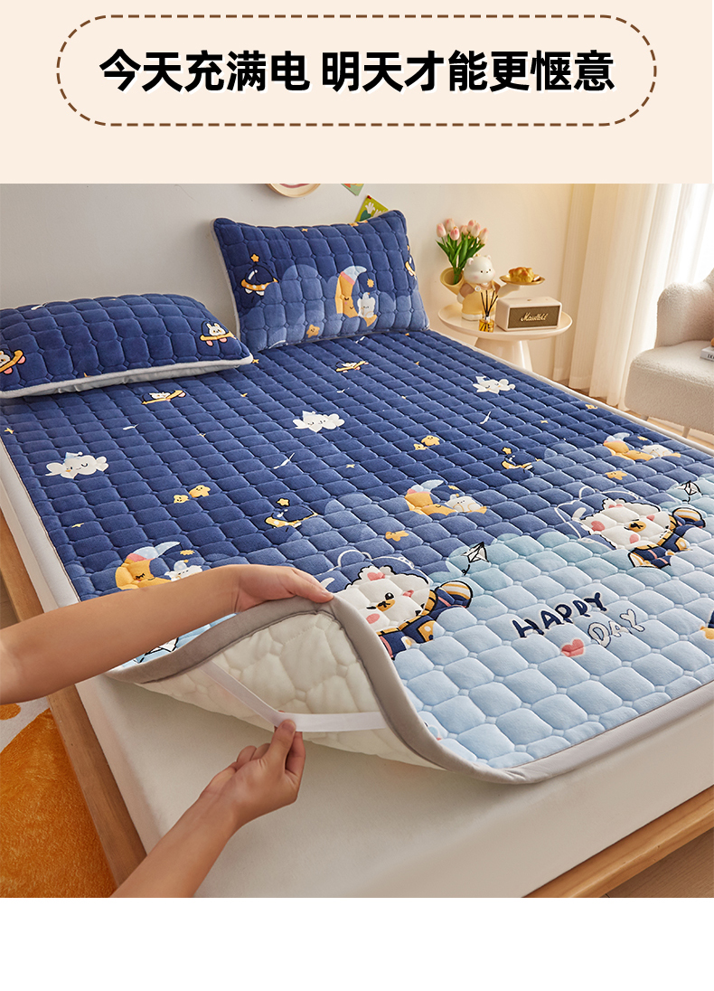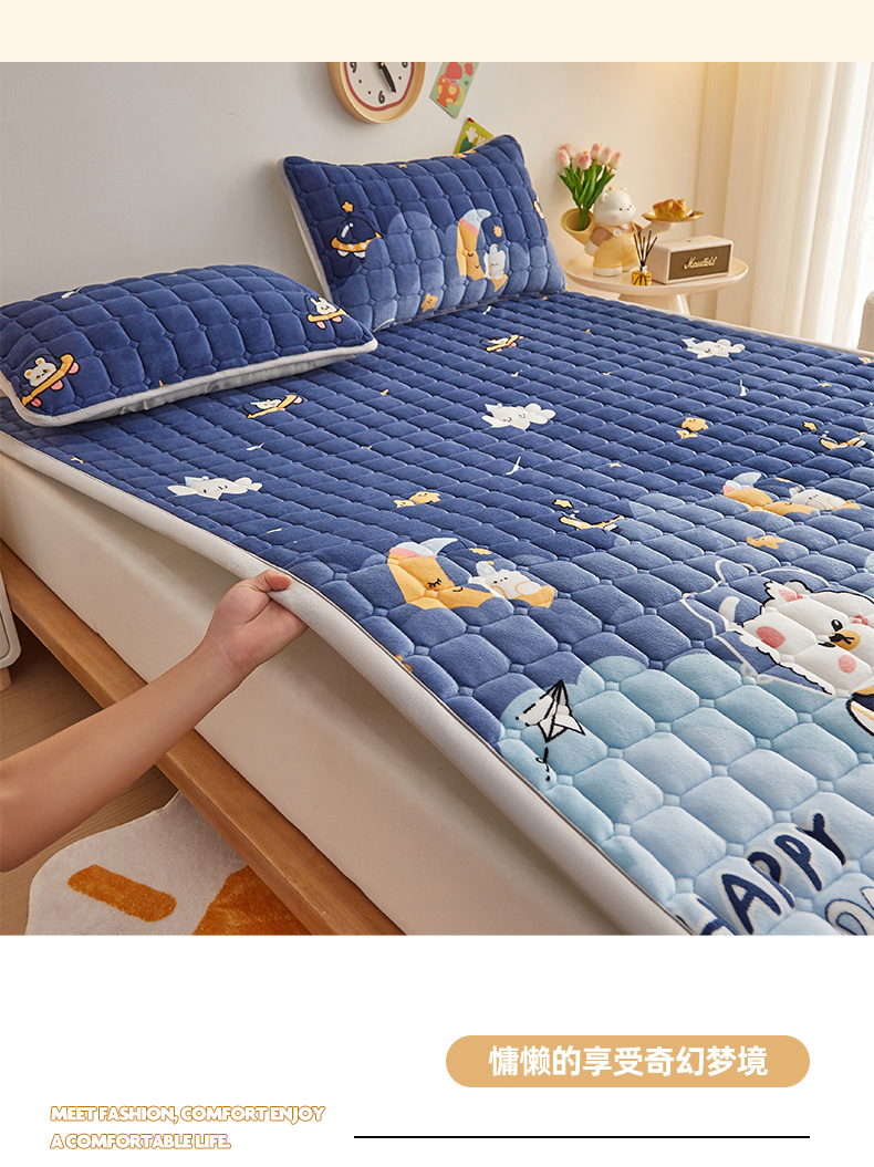 • 91家纺网 家纺一手货源 找家纺 (总)奇丝雅 2025新款A类牛奶绒泡泡绒床褥床垫床盖兔毛绒家用学生宿舍上下铺寝室褥子软垫床护垫夹棉(大床)场景二,星星猫咪,月亮湾,趴趴狗,繁星,爱心咖,樱桃猫咪,幻影灰,暖绒蓝,清新绿,柔和蓝