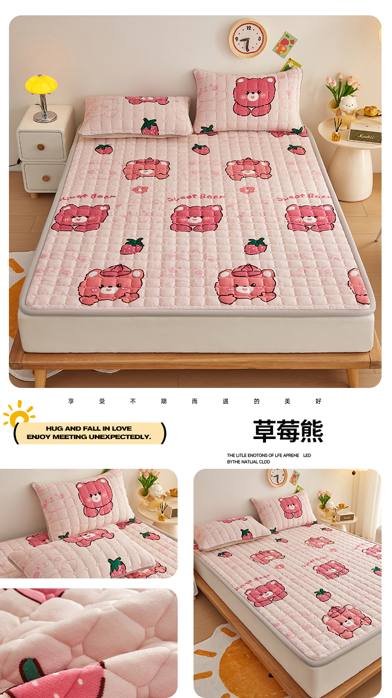 (总)奇丝雅 2025新款A类牛奶绒床褥床垫软垫家用学生宿舍上下铺寝室床护垫夹棉褥子-大床款套件,草莓物语,高级灰,筑梦星空,月亮熊,晚安,欢乐熊,满天星,幸运星,宇航员,大蓝格,水纹星,草莓熊