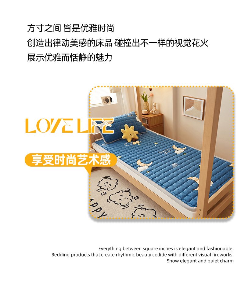 • 91家纺网 家纺一手货源 找家纺 奇丝雅 2025新款A类牛奶绒床褥床垫家用学生宿舍上下铺寝室软垫床护垫夹棉褥子-学生床垫 晚安
