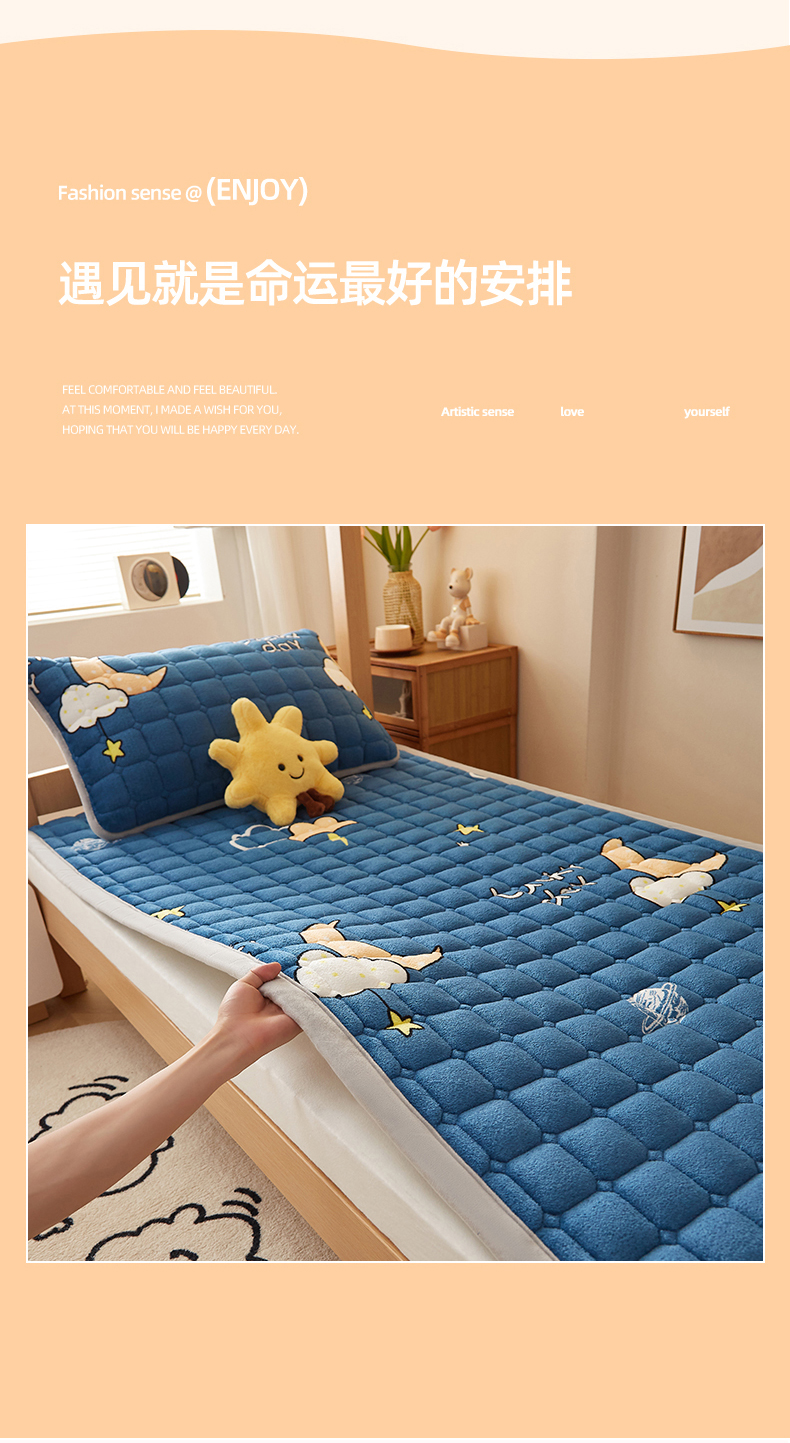 (总)奇丝雅 2025新款A类牛奶绒泡泡绒床褥床垫床盖兔毛绒家用学生宿舍上下铺寝室褥子软垫床护垫夹棉(大床)场景二,星星猫咪,月亮湾,趴趴狗,繁星,爱心咖,樱桃猫咪,幻影灰,暖绒蓝,清新绿,柔和蓝