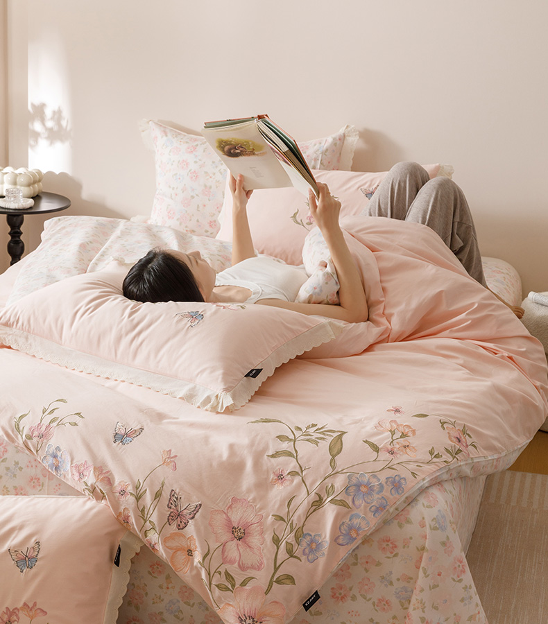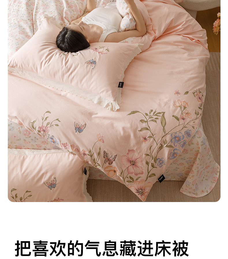 商品名称:(总)卡姿家纺 2025秋冬小清新绣花+印花四件套-茉莉