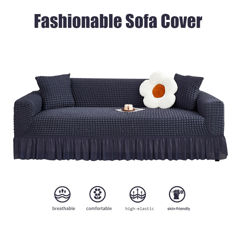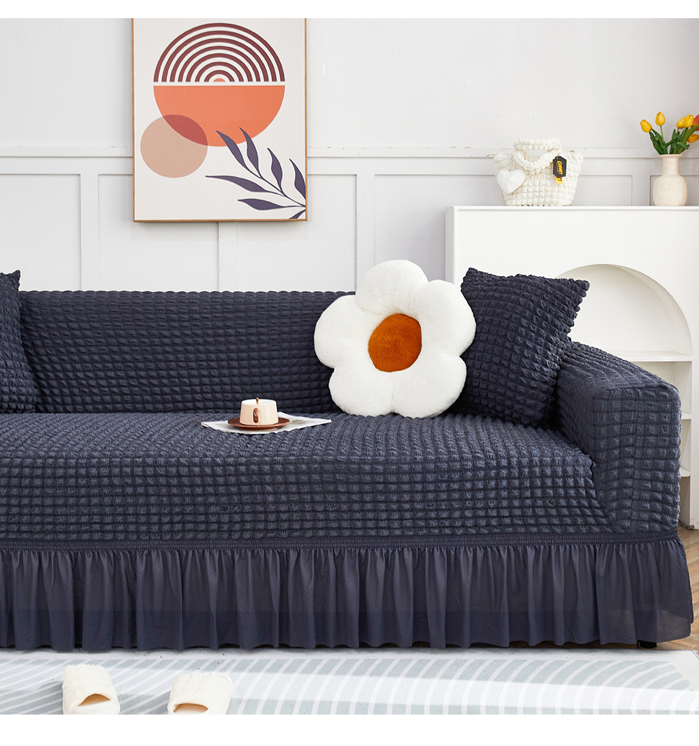 商品名称:布兰鸟【沙发套】 2025新款泡泡沙发套四人位【英文裙摆款】 单色深灰