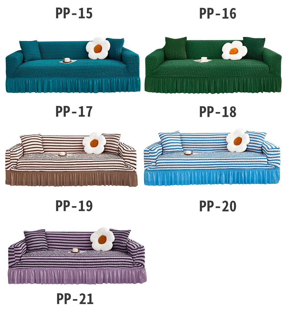 (总)布兰鸟【沙发套】 2025新款泡泡纱无扶手沙发床套【英文裙摆款】,单色酒红,单色蜡白,单色绿,单色米黄,单色中灰,单色紫,孔雀蓝,双色咖,双色蓝