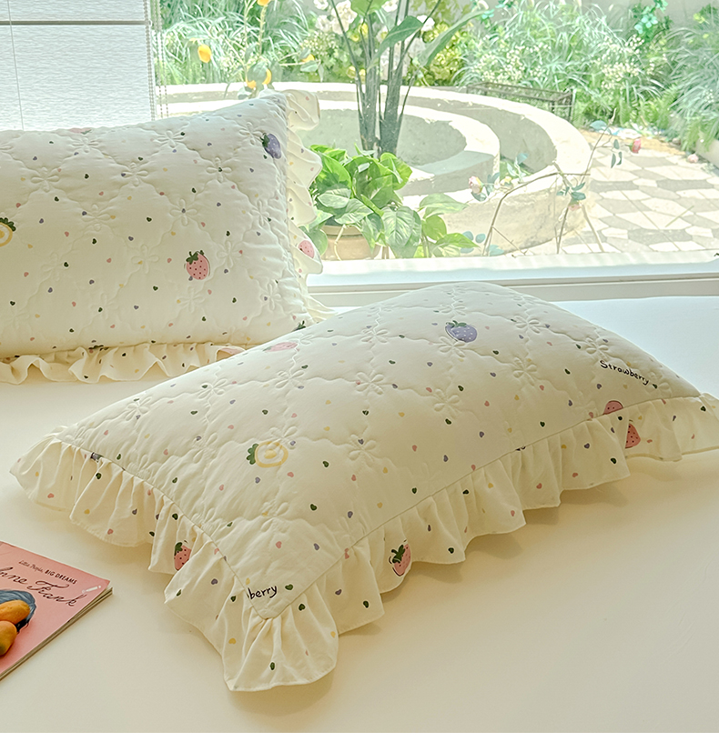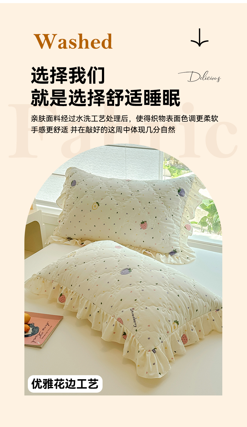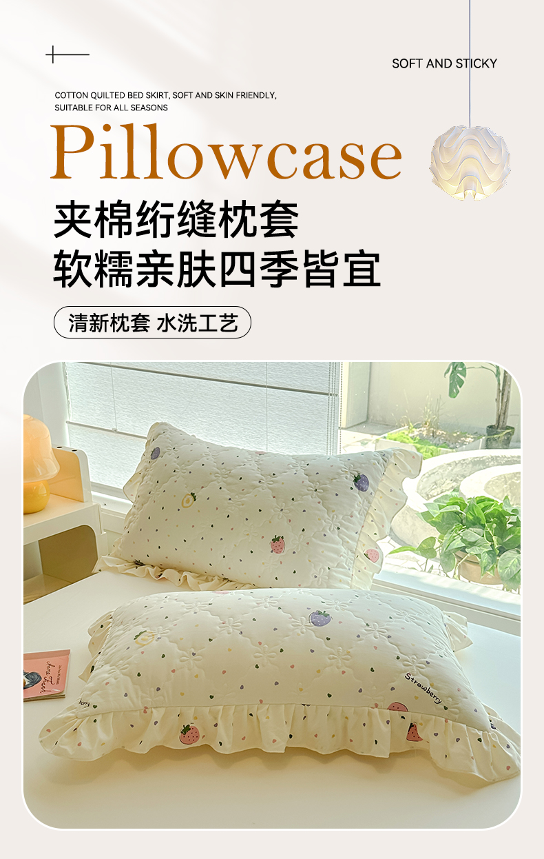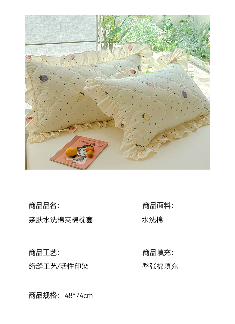 商品名称:忘忧草 2025新款亲肤水洗棉花边单枕套 枕套单件 甜蜜草莓