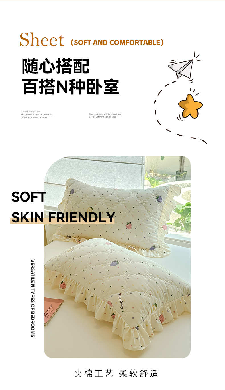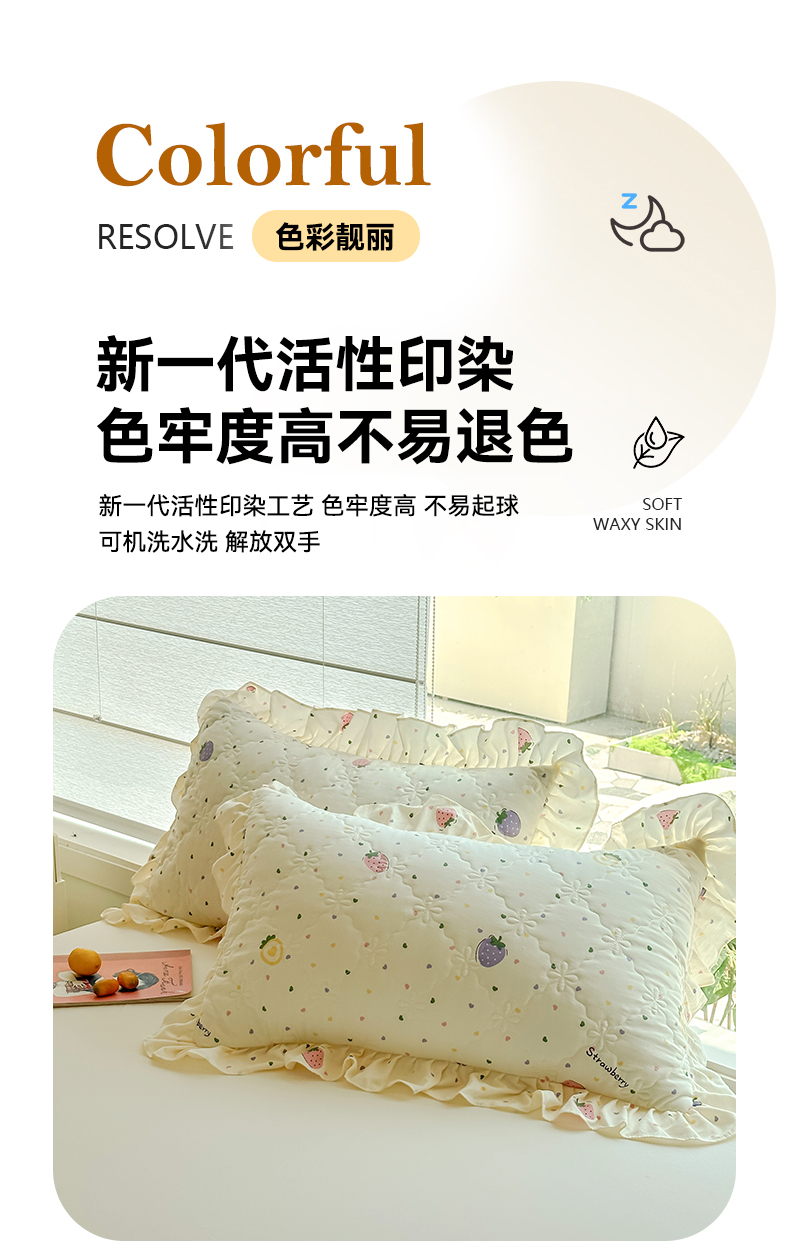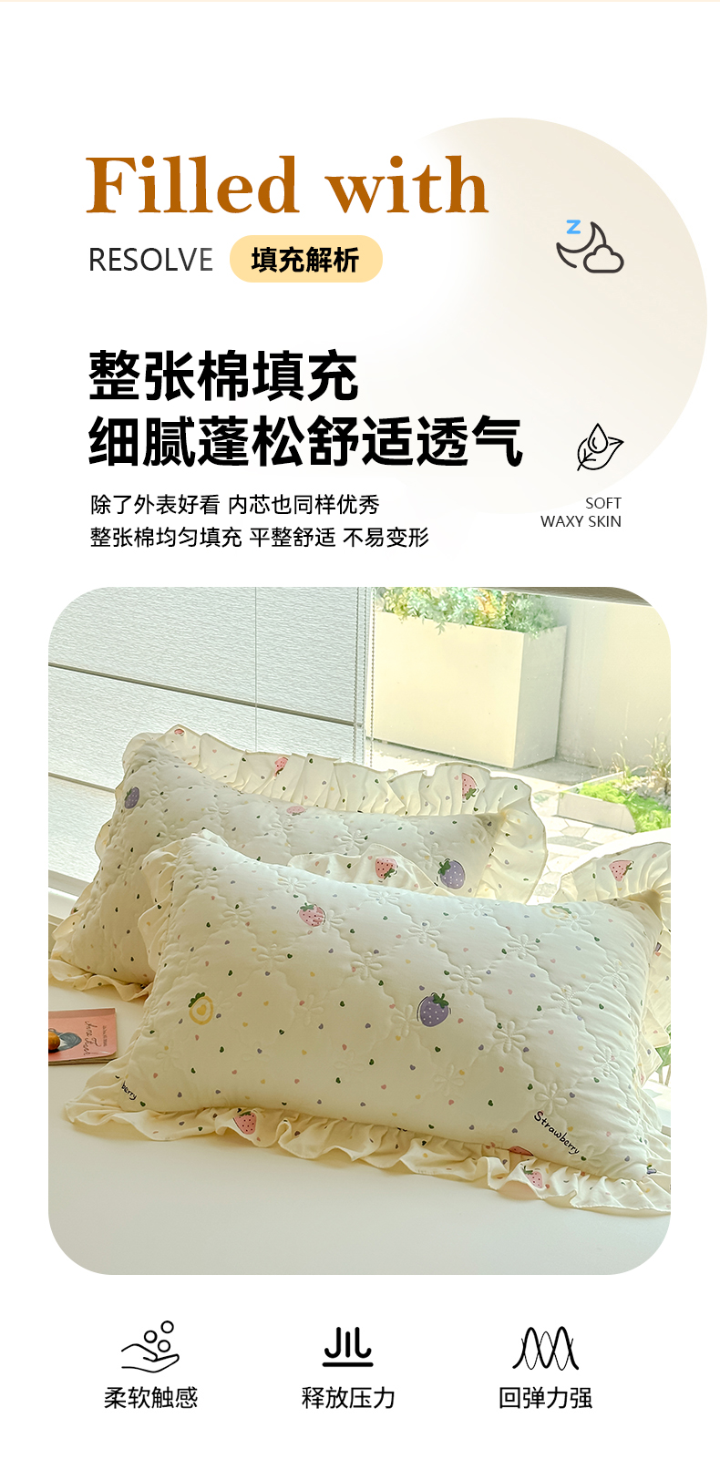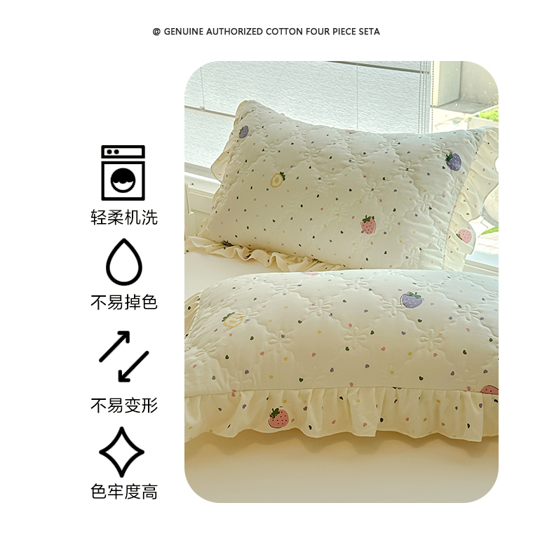 商品名称:忘忧草 2025新款亲肤水洗棉花边单枕套 枕套单件 甜蜜草莓