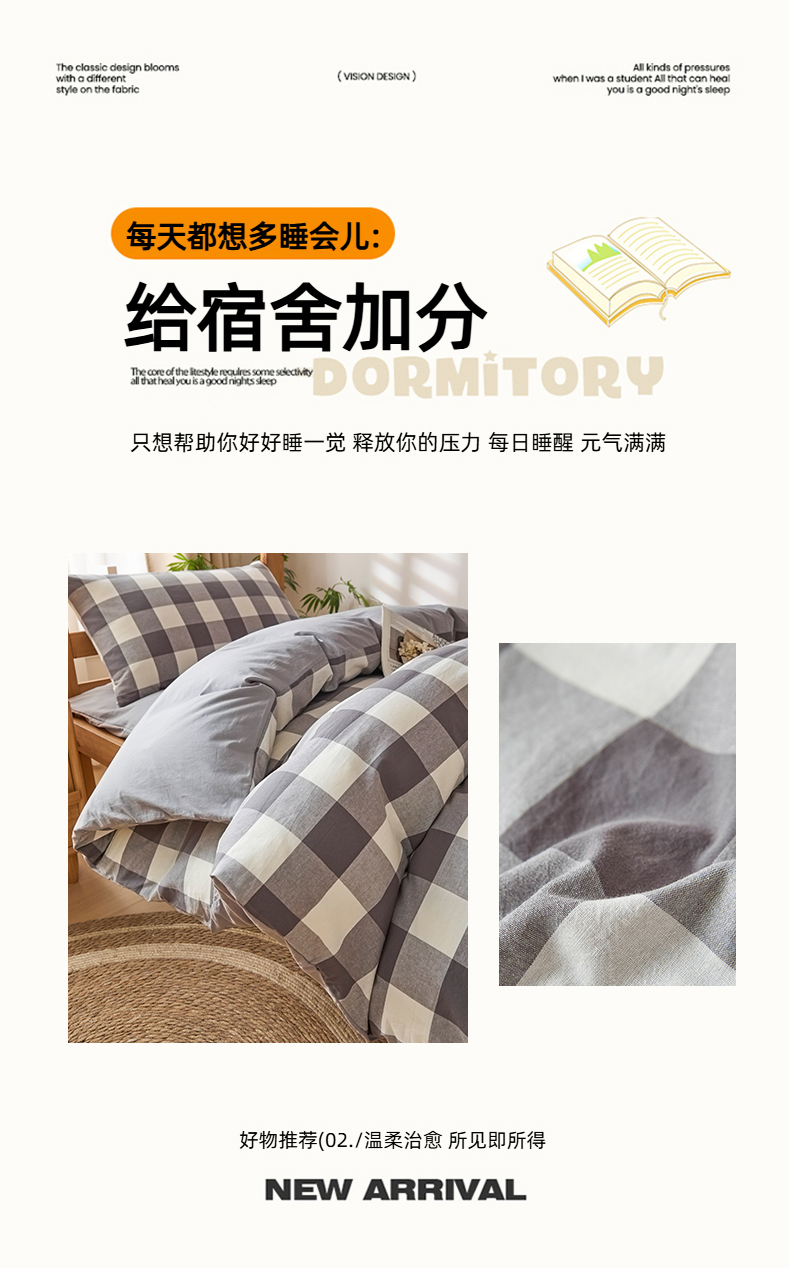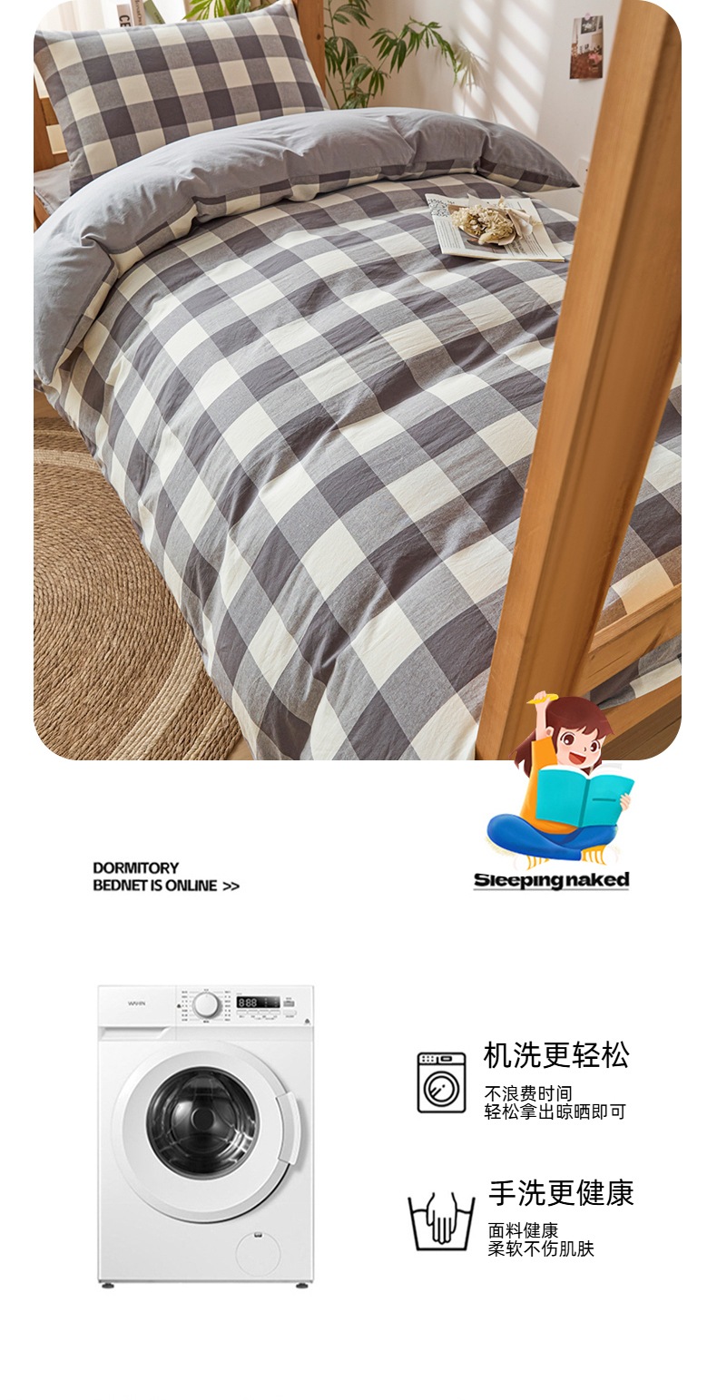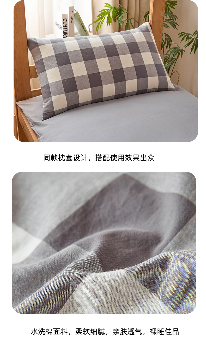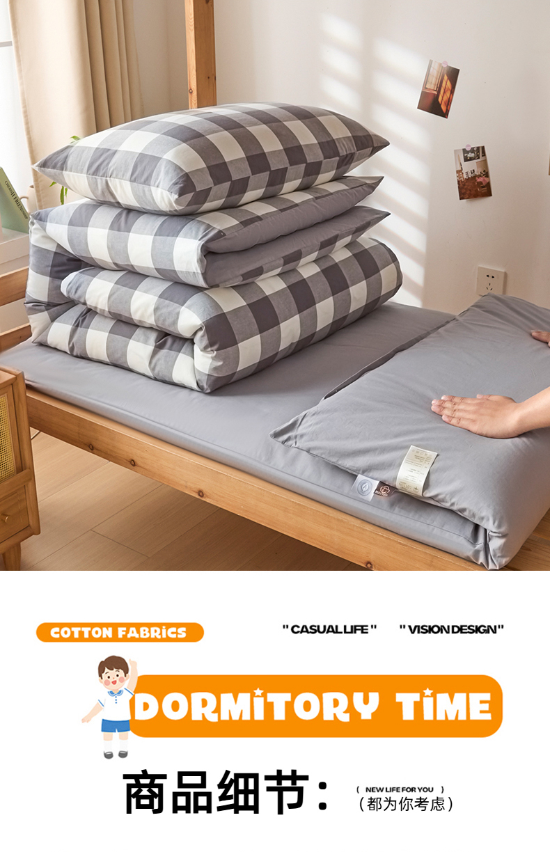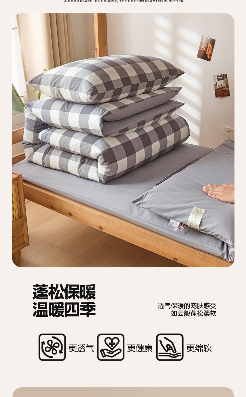 商品名称:爱屋及屋 2025新款水洗棉学生季大礼包学生宿舍六件套棉花被+棉花垫子+枕头+三件套一站式全套 灰中格