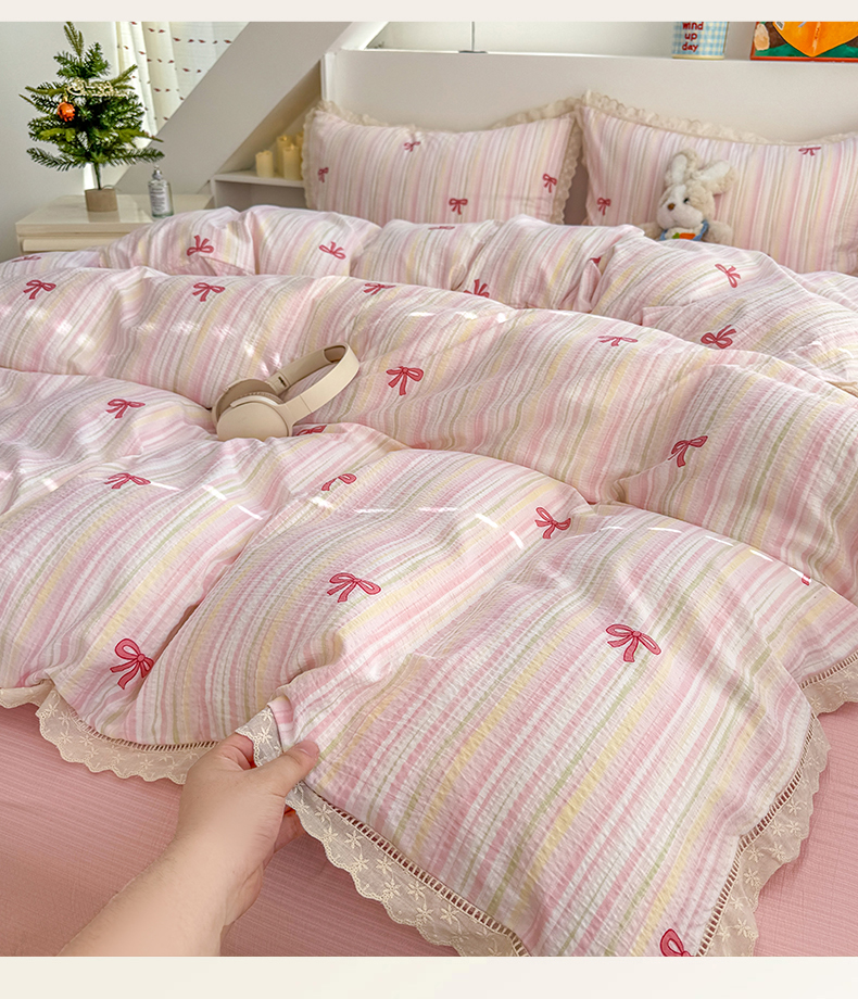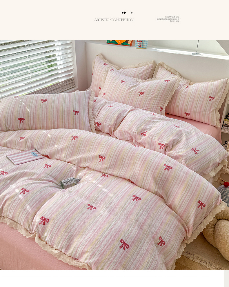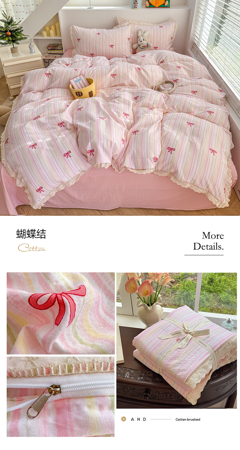 当前位置: 91家纺网 > 商品网购 > 床品套件 > 四件套 > 其它四件套 > 艾特你 2025新款云感双层纱镂空花边四件套 花边款-精致蝴蝶结