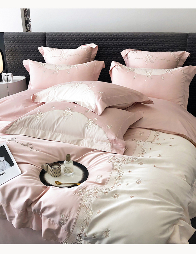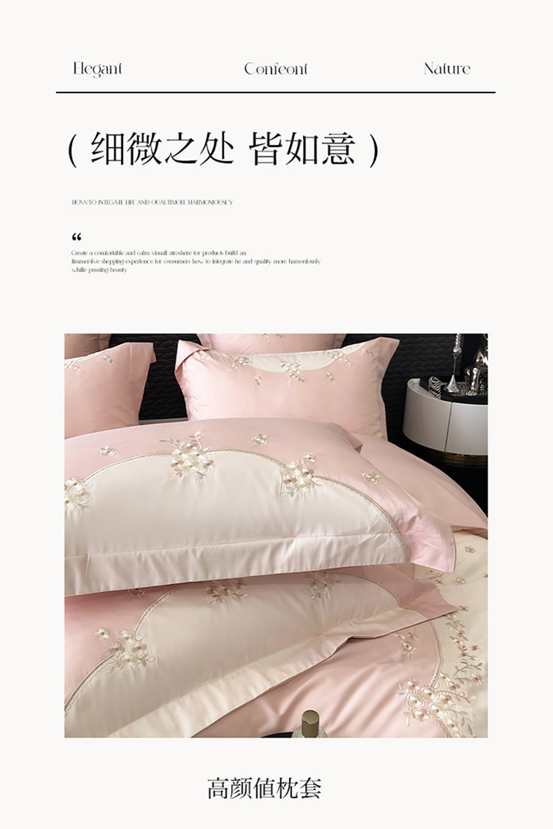 商品名称:佳汐蓝家纺 2025新款A类100支长绒棉纯棉四件套-花城秘境 花城秘境-粉
