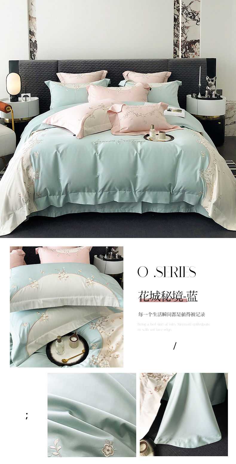 (总)佳汐蓝 2025春夏新品双层皱皱纱刺绣+荷叶边四件套--花与浔,奶白,天蓝