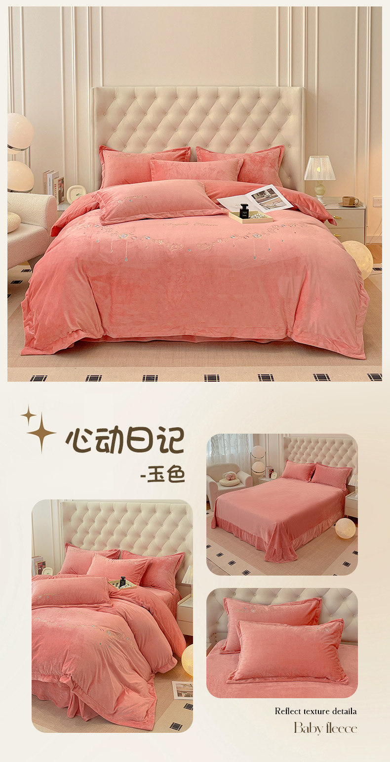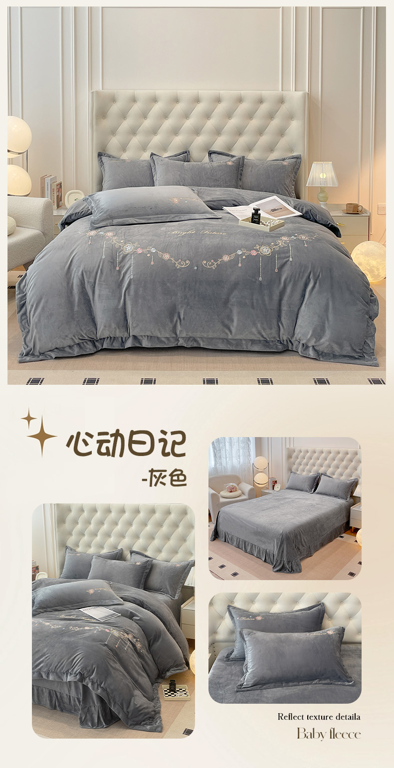 (总)艺玲家纺 2025新款婴儿绒高端绣花四件套,蝶舞-果绿,蝶舞-灰色,蝶舞-玉色,心动日记-果绿,心动日记-灰色,心动日记-玉色