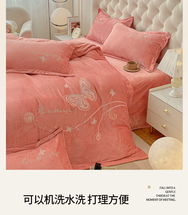 艺玲家纺 2025新款婴儿绒高端绣花四件套 蝶舞-玉色