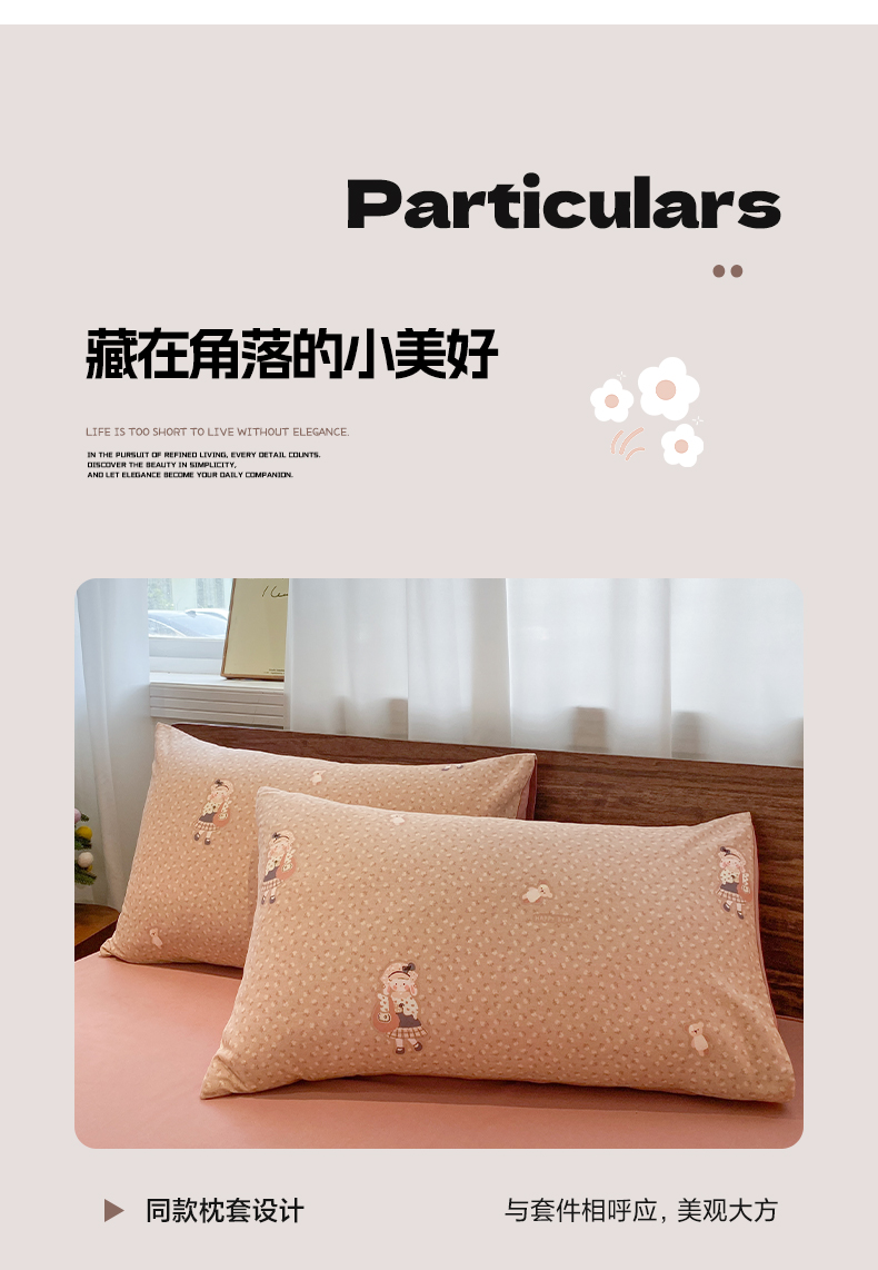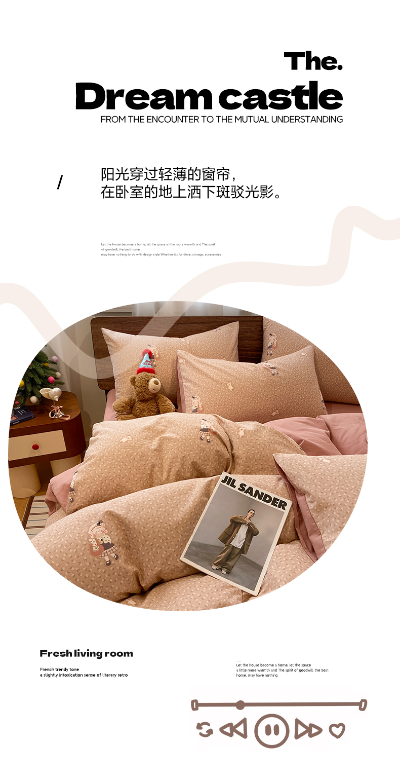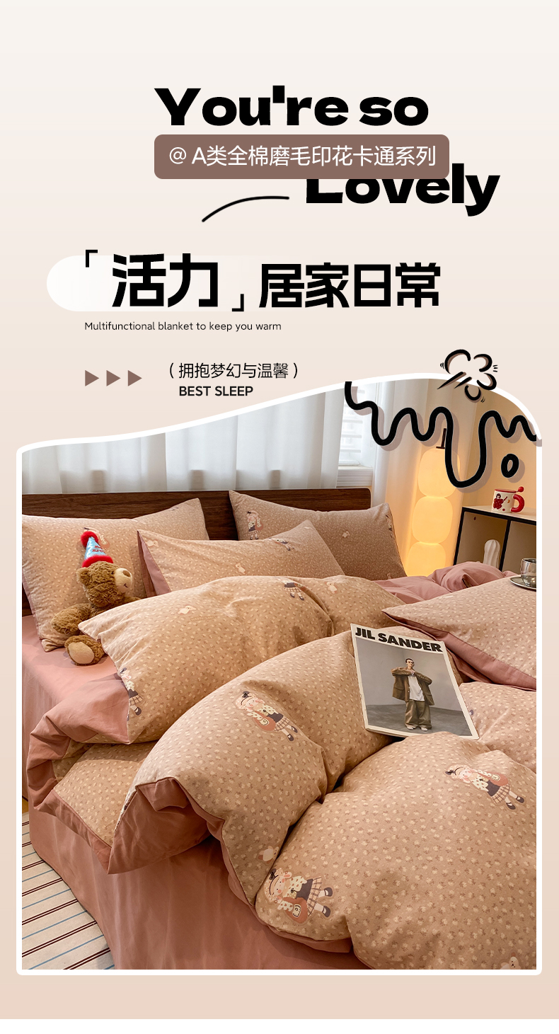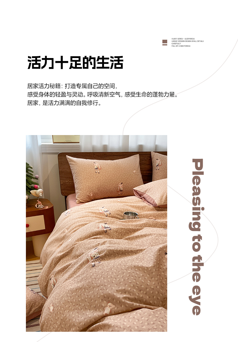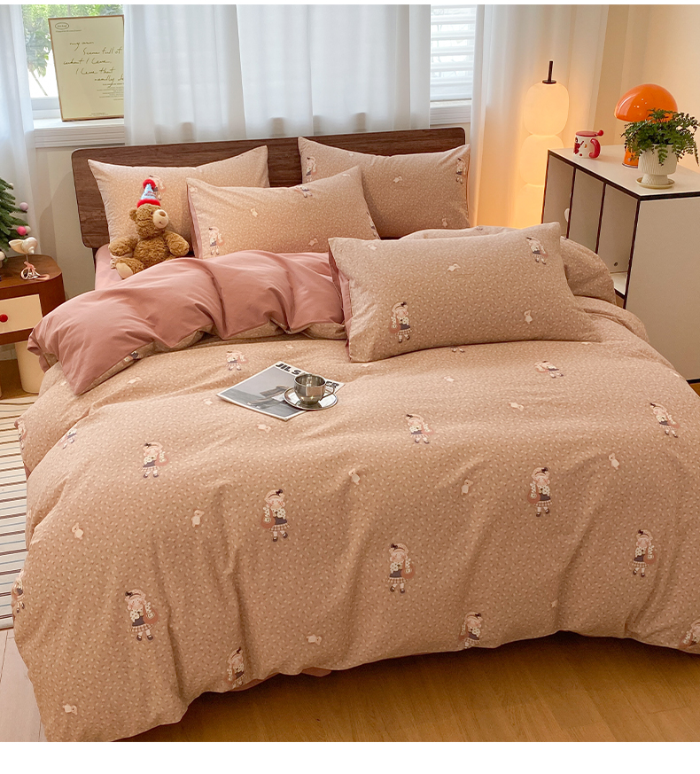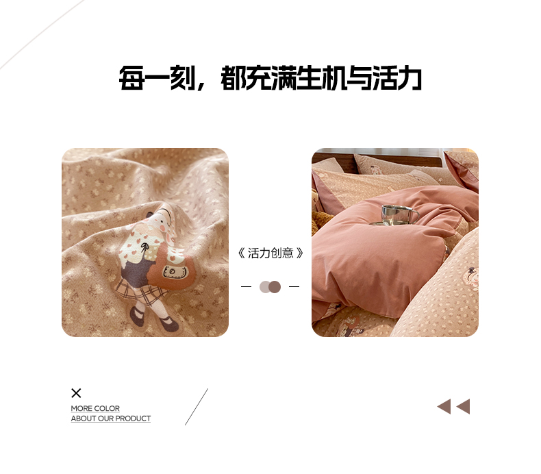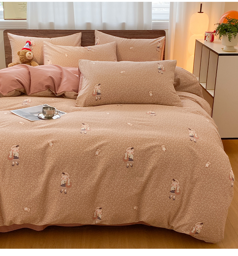 当前位置: 91家纺网 > 商品网购 > 床品套件 > 四件套 > 全棉普通四件套 > 莱登卡奴 2025新款A类100%全棉磨毛条格卡通系列四件套 乐桃-咖