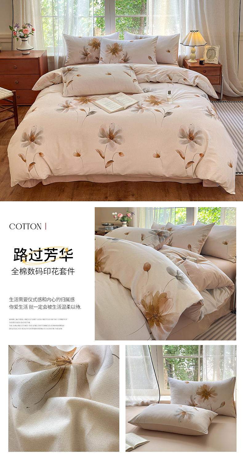 当前位置: 91家纺网 > 商品网购 > 床品套件 > 四件套 > 全棉普通四件套 > 优彩 2025新款数码印花全棉纯棉磨毛四件套 路过芳华